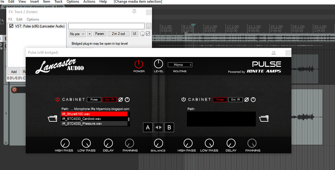 Regarding the Impulse Responses, yes I applied the IR on a regular recording. In my understanding IRs are nothing more than a sort of fixed EQ settings which makes the comparison from @ChristopheCarington with the LUTs in video quite fitting I think, which are also fixed settings in color grading. I used the Pulse IR Loader from Lancaster Audio (it's free). It's intended to be used as a guitar cab simulator but you can also just use it to load any IR file into it: