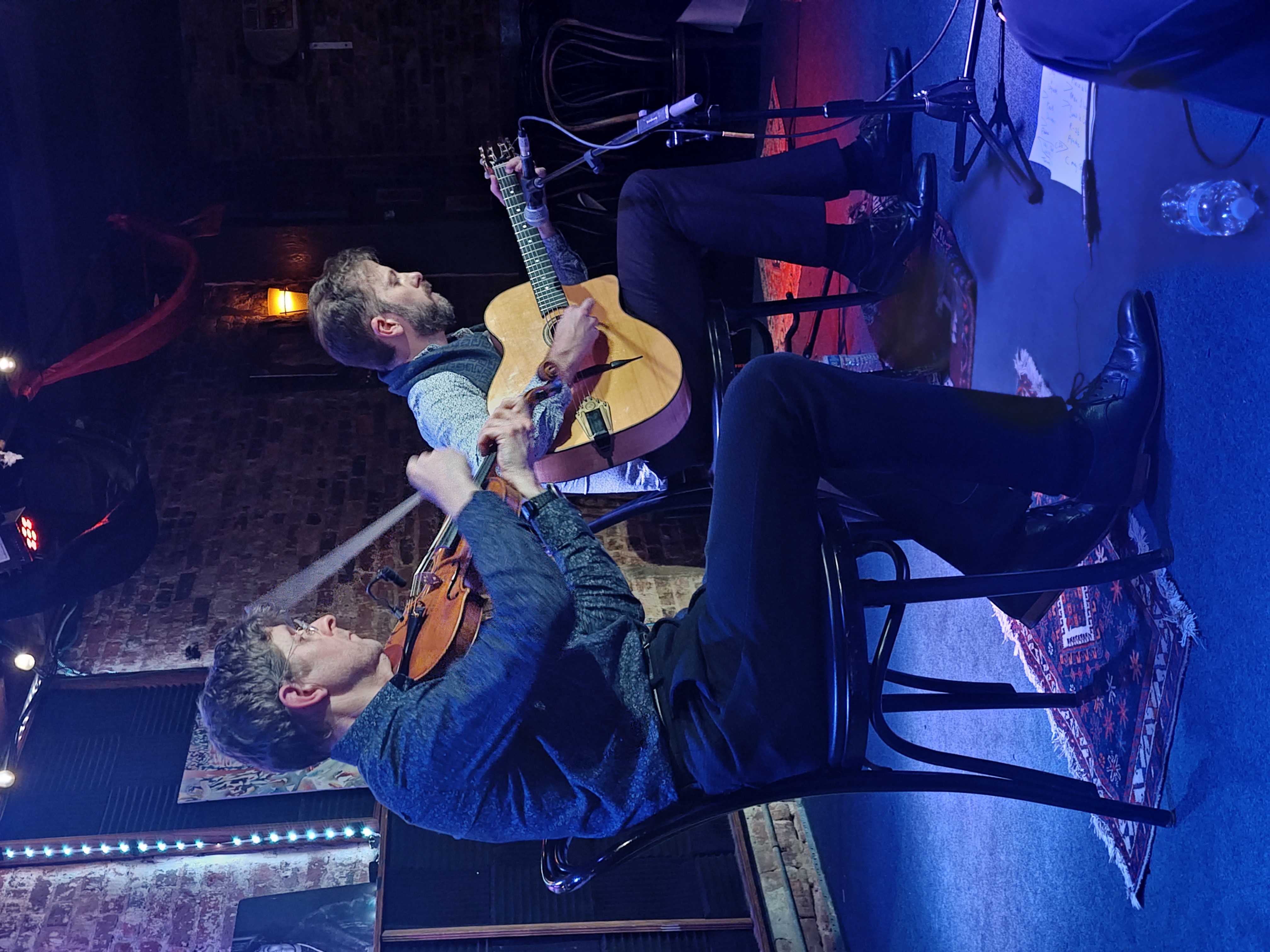 Pretty cool how two instruments, as Tim said "we are 10 strings", can carry the music fully. You don't really feel like you're missing anything. Credit to both of them for being great accompanists thou. Tim was a perfect rhythm player while backing Jimmy.