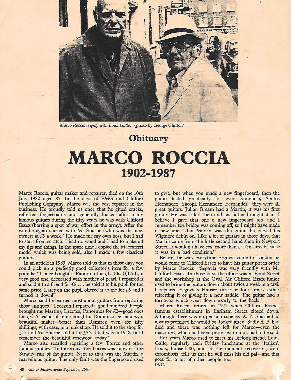For those interested I found a legible copy of an Obituary for Marco Roccia from 'Guitar International' Sep 1987.