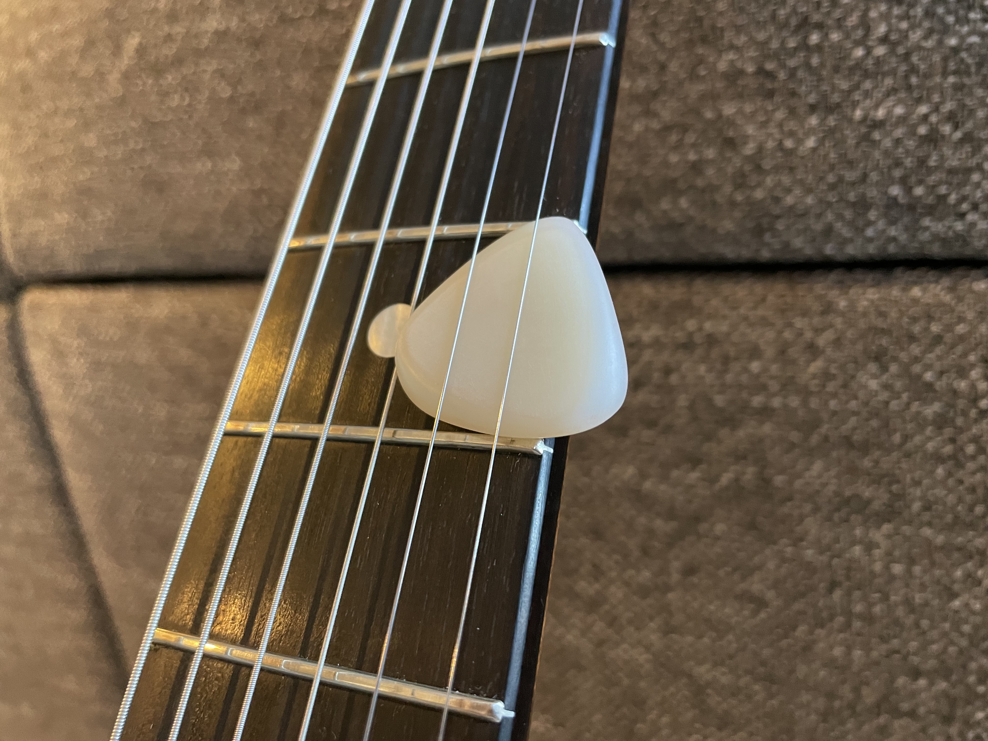 It’s taken me a very long time to find out which type of pick I prefer and it’s only been by accident. I have a cheap ‘Passion 2mm’ pick which I think I got in a pack of 12. However, because it isn’t well made it has a slight serration or perhaps an imperfect edge at the tip which makes it catch on the string more. What I’ve found out is that seemingly all smooth picks slide over the strings too much ( for me) and that the ‘imperfect edge’ gives a very slight drag, a sense of feedback, during single note stuff. I play a lot more accurately and the string sounds louder with more treble