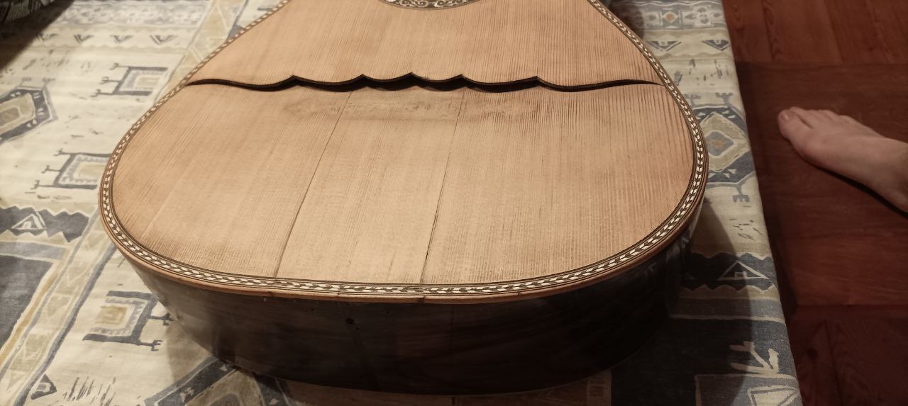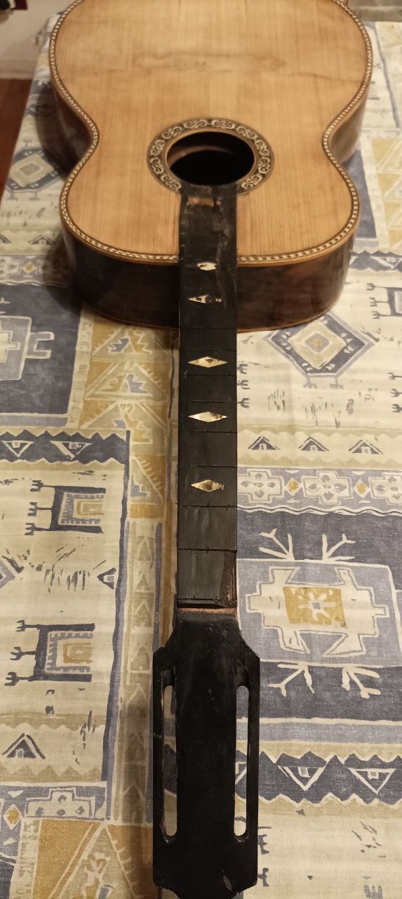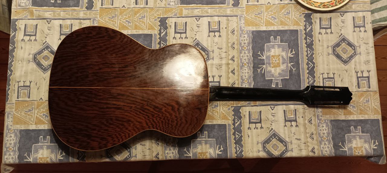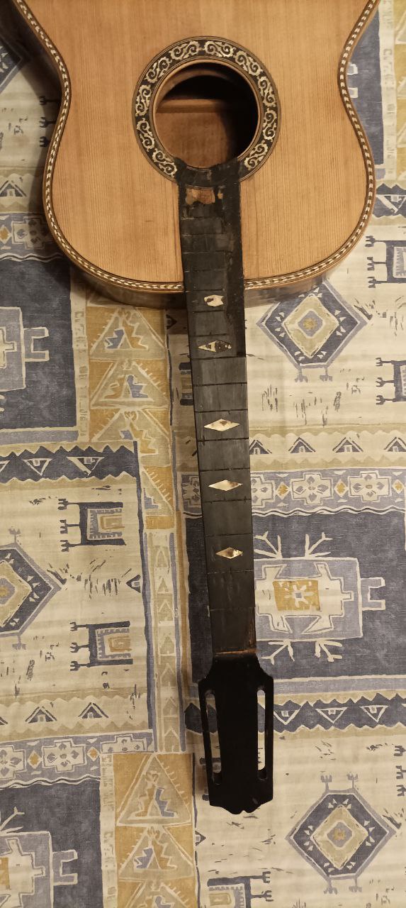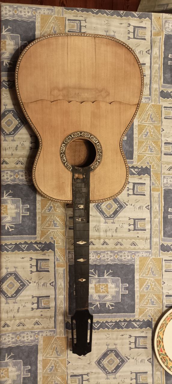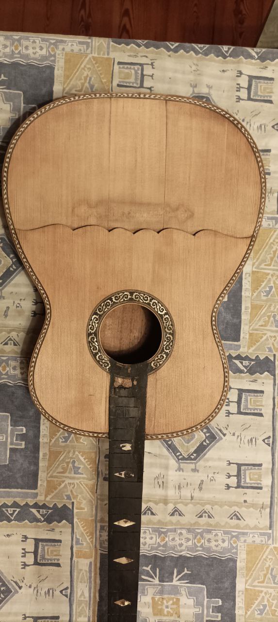 Fretboard has to be redone. The bridge is not glued but I have it, tailpiece and tuners are missing.