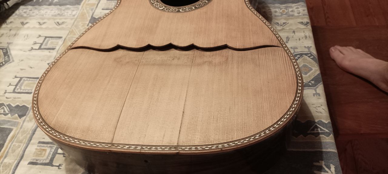 It should be made by Freres Gerome , double top model, like the mandolins they made, all inspired by the Gelas guitars.