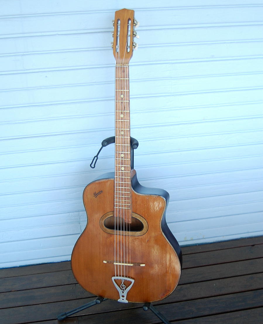 A well-known name in Gypsy jazz guitar circles, though I’ve no real indication there was a factory or atelier anywhere, nor a luthier of that name.