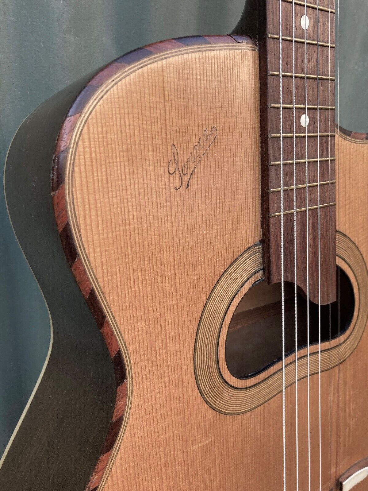 To my mind , he's definitely a contender for the main luthier of what I've called the "Clef" model (see page 1 of this thread) . We've already mentioned a V Jacobacci connection regarding this model - perhaps his partner, S. Amico, was building these guitars in their shared premises with some more "Sicilian" techniques &/or design ideas