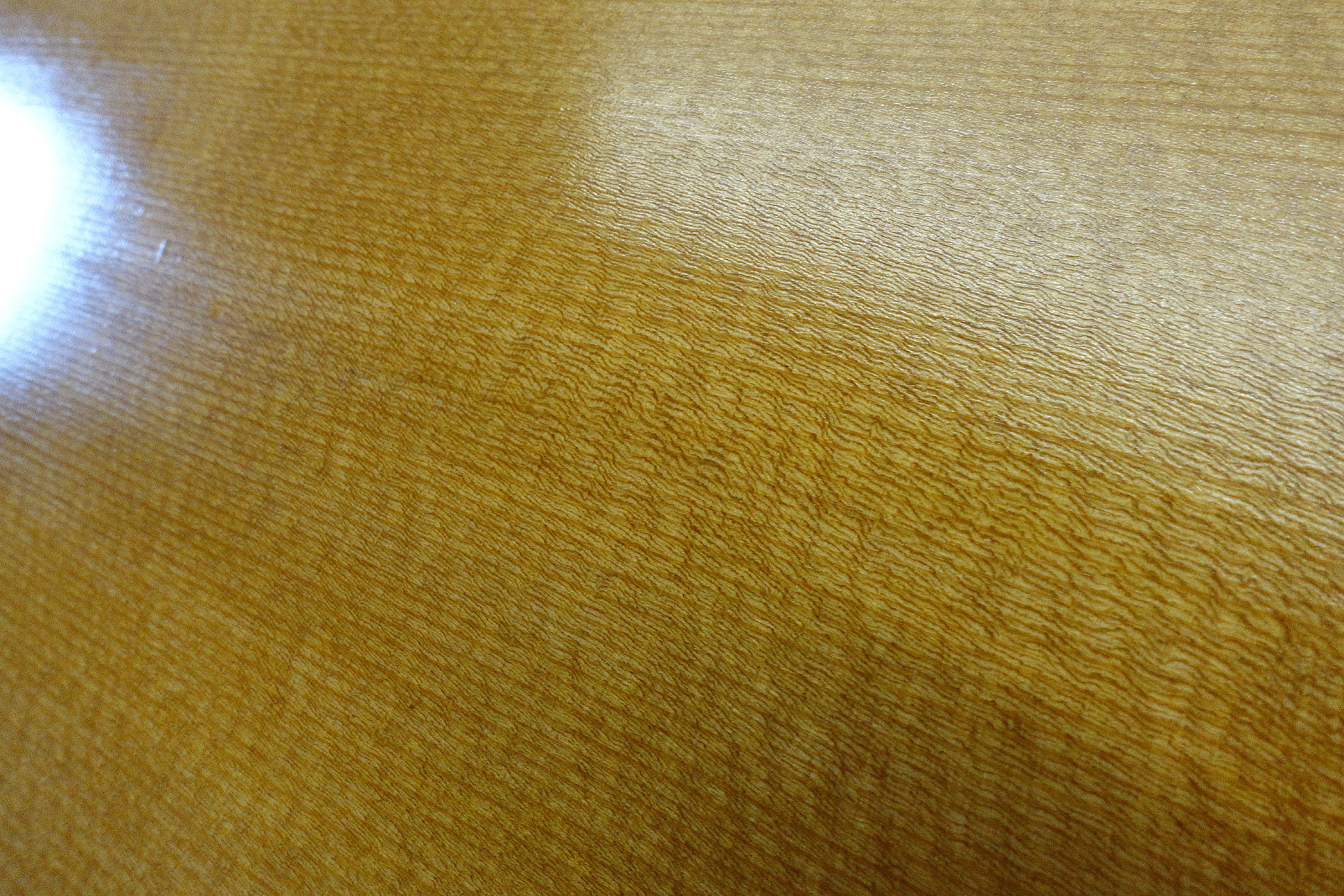 The lovely spruce top is very thin and has a nice cross-grain pattern - is this a bear claw? I hadn't noticed it before through the lacquer.
