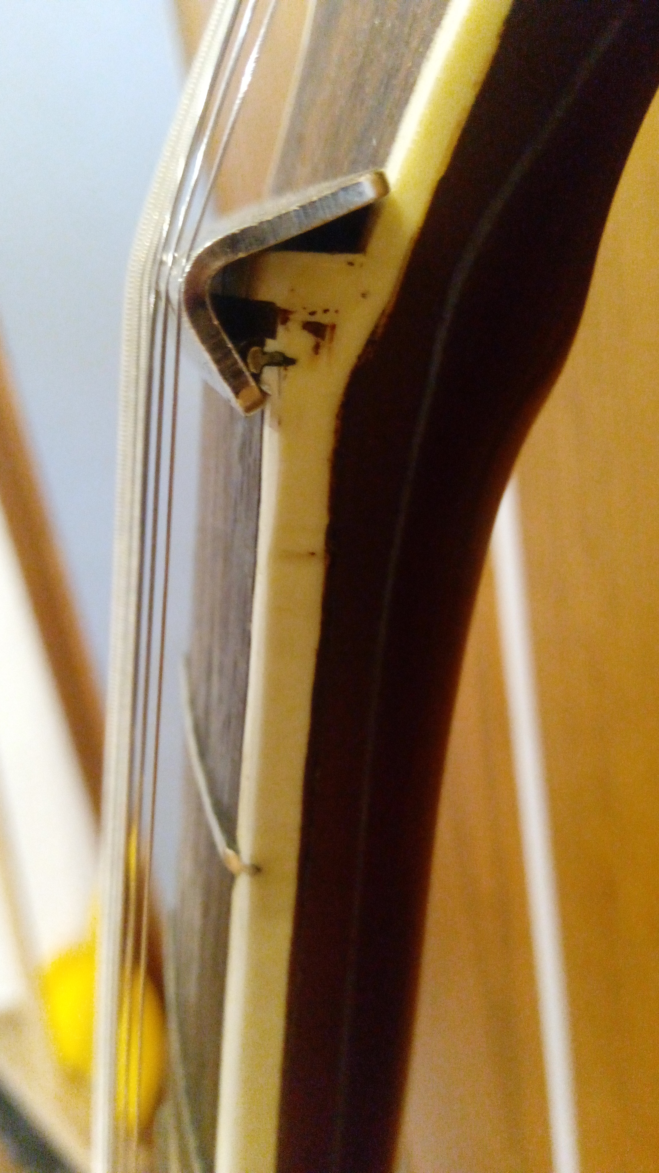 As this guitar too cannot be set up properly, I wanted to sell it although I like it's sound. But luthier Karsten Schnoor showed me how to sand the upper frets, and I am very hopeful this will work and make the guitar a little gem again.