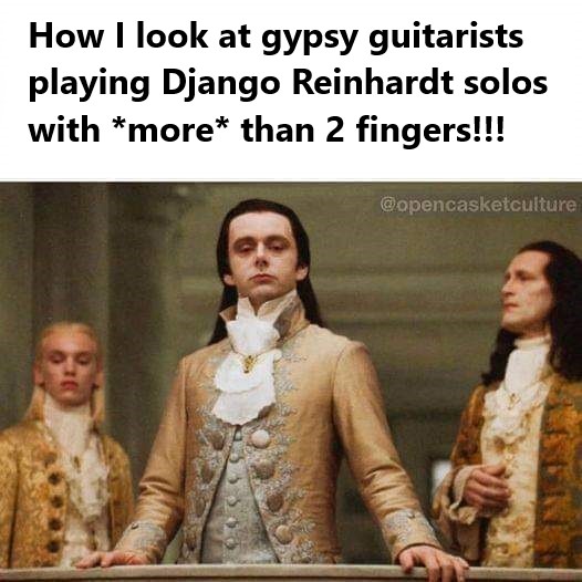 I hope that if he goes to Soundslice maybe he can find one single tabbed-out Django solo which he can work on for the rest of his life to play with two fingers.