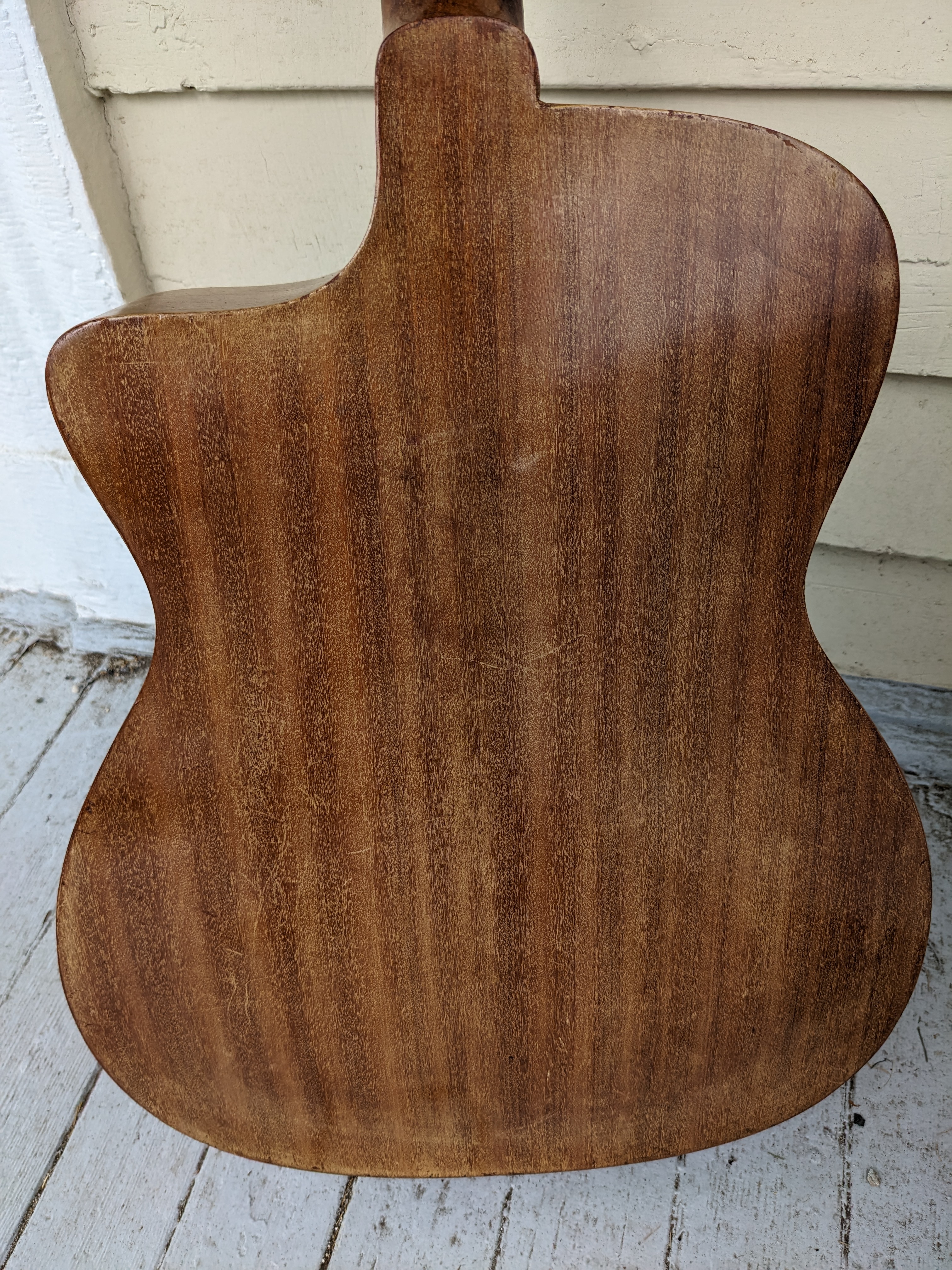 This is the guitar that was previously advertised with a nasty neck break. It's repaired now and it should be good to go going forward (obviously, it could break again, like any guitar neck, but I don't think it's weaker than it was when it was new). In the meantime I've also radiused the fingerboard (it was dead flat) and refretted it.