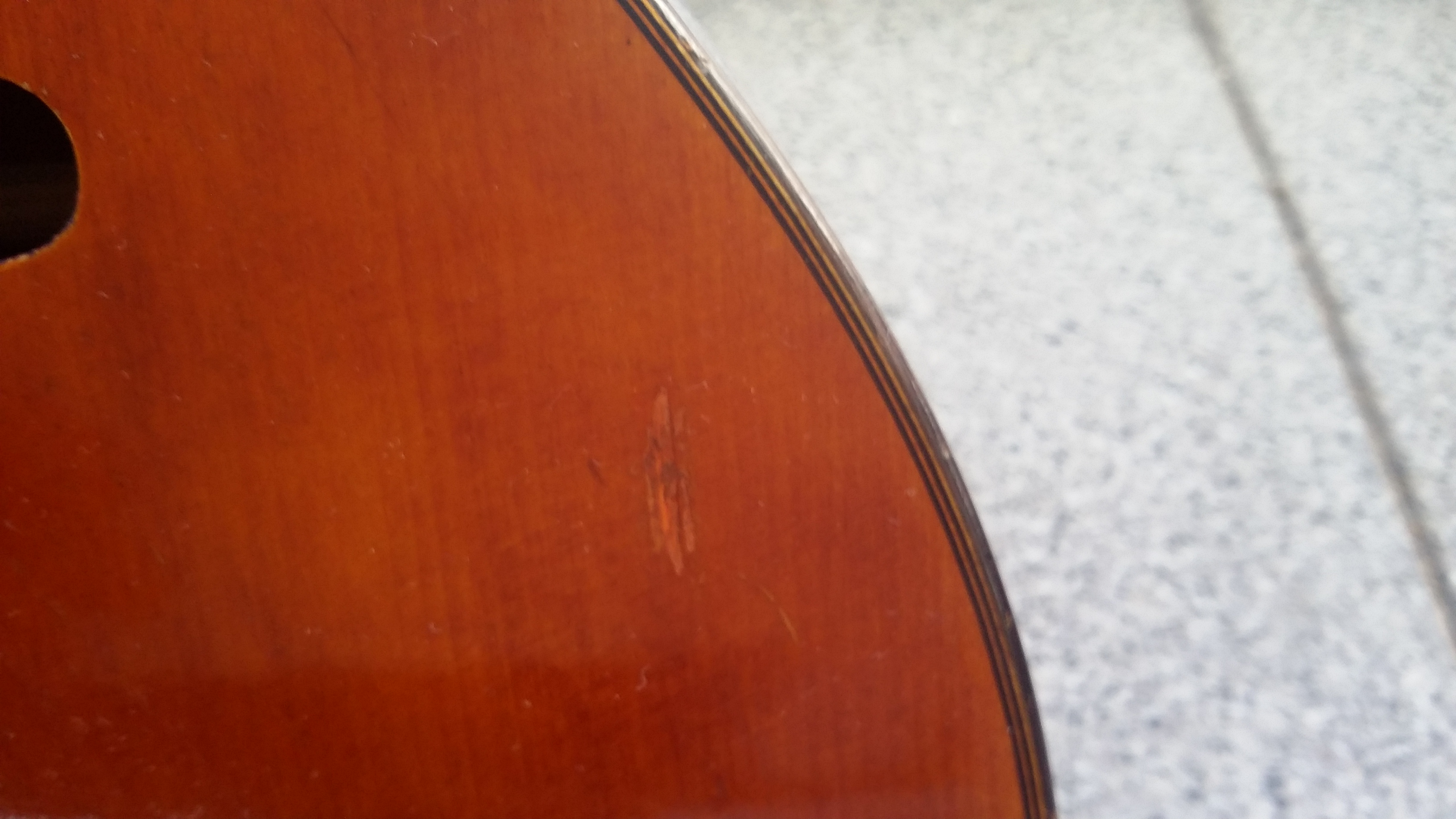 Seems that the comments so far can be broken down into the technical and the philosophical. This applies in practice like this. You do all the technical stuff possible, inevitably run into limits, and sooner or later arrive at the philosophical side. Case in point, after I wrote my initial post about accidentally throwing my keys at my new cedar topped ax, I did my first show with the new guitar. It's all that and I love the thing. A day or so later I noticed a ding bigger than any of the ones my keys made. Again, I'm on crutches and move around in weird ways on stage.
