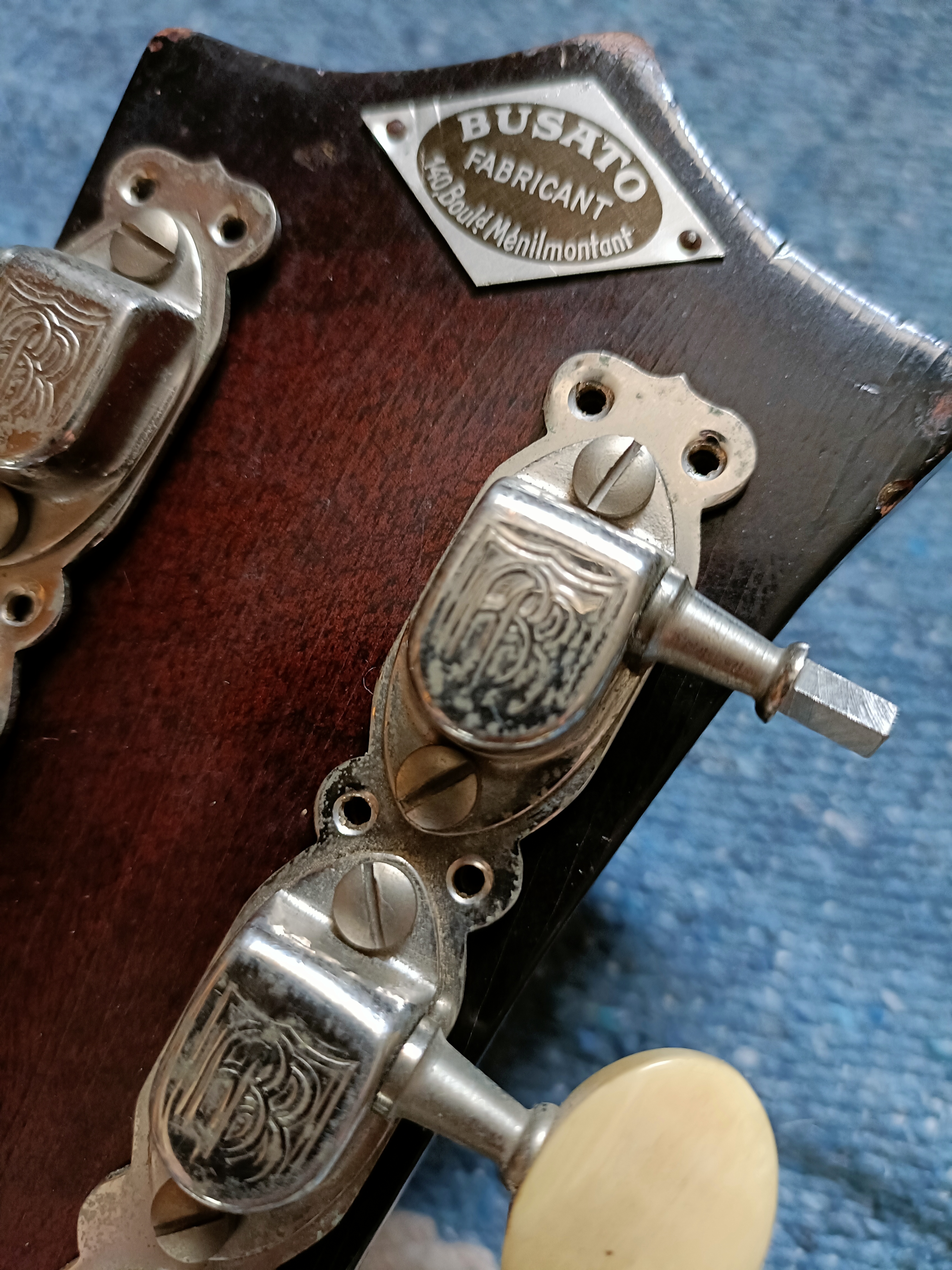 Hello everyone, yesterday I bought this old archtop for less than 100 euros. Comes out it is a Busato, or at least it has the small tag behind the headstock and the BB tuners. I would like to know If someone has more infos about this model.