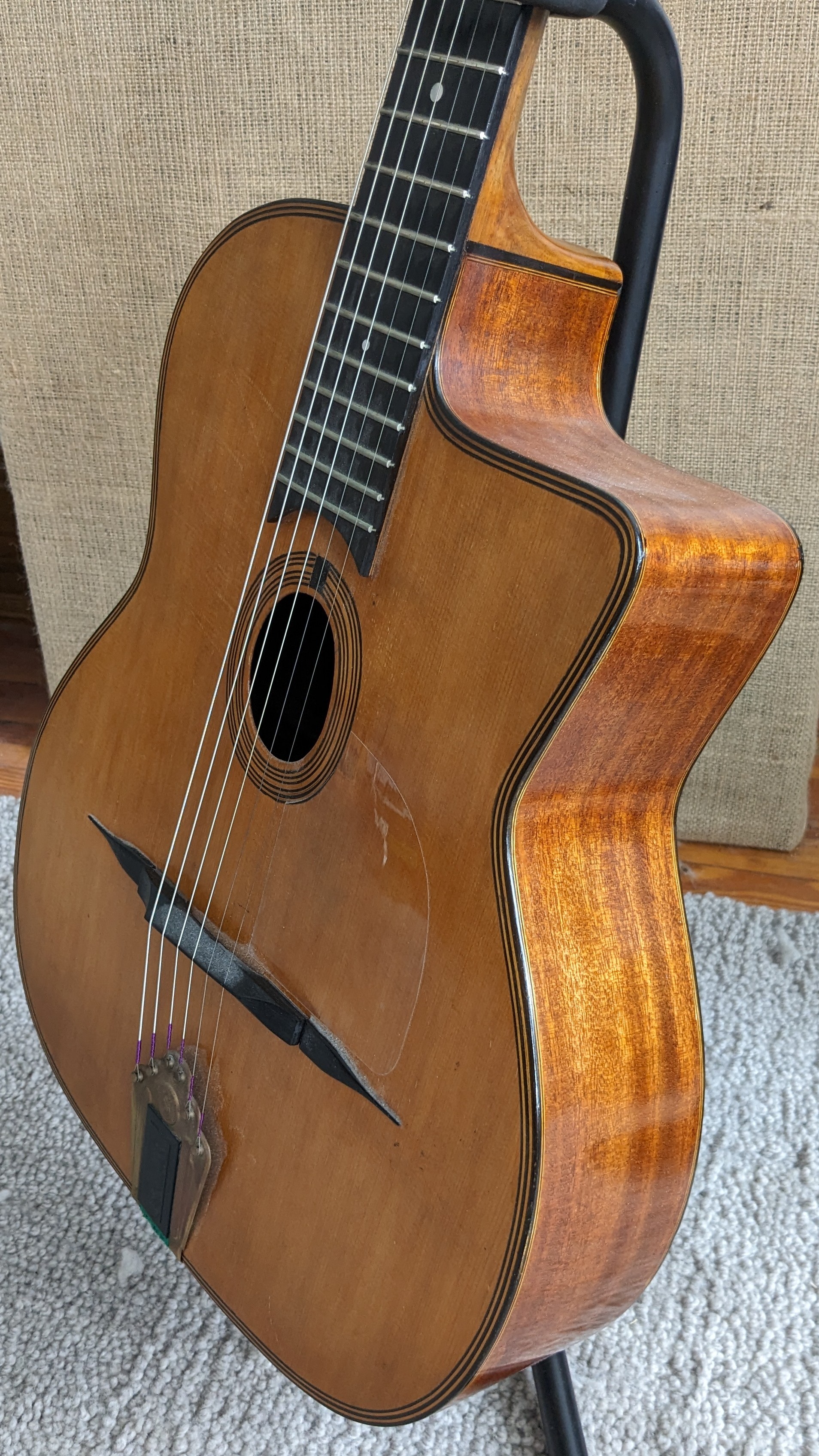 Selling my beloved Rino 16. Impeccable Selmer tone from Dutch luthier Rino van Hooijdonk. One owner and kept in a humidified home studio. Carved spruce top and solid mahogany back and sides. Pics and a video below. Thanks!
