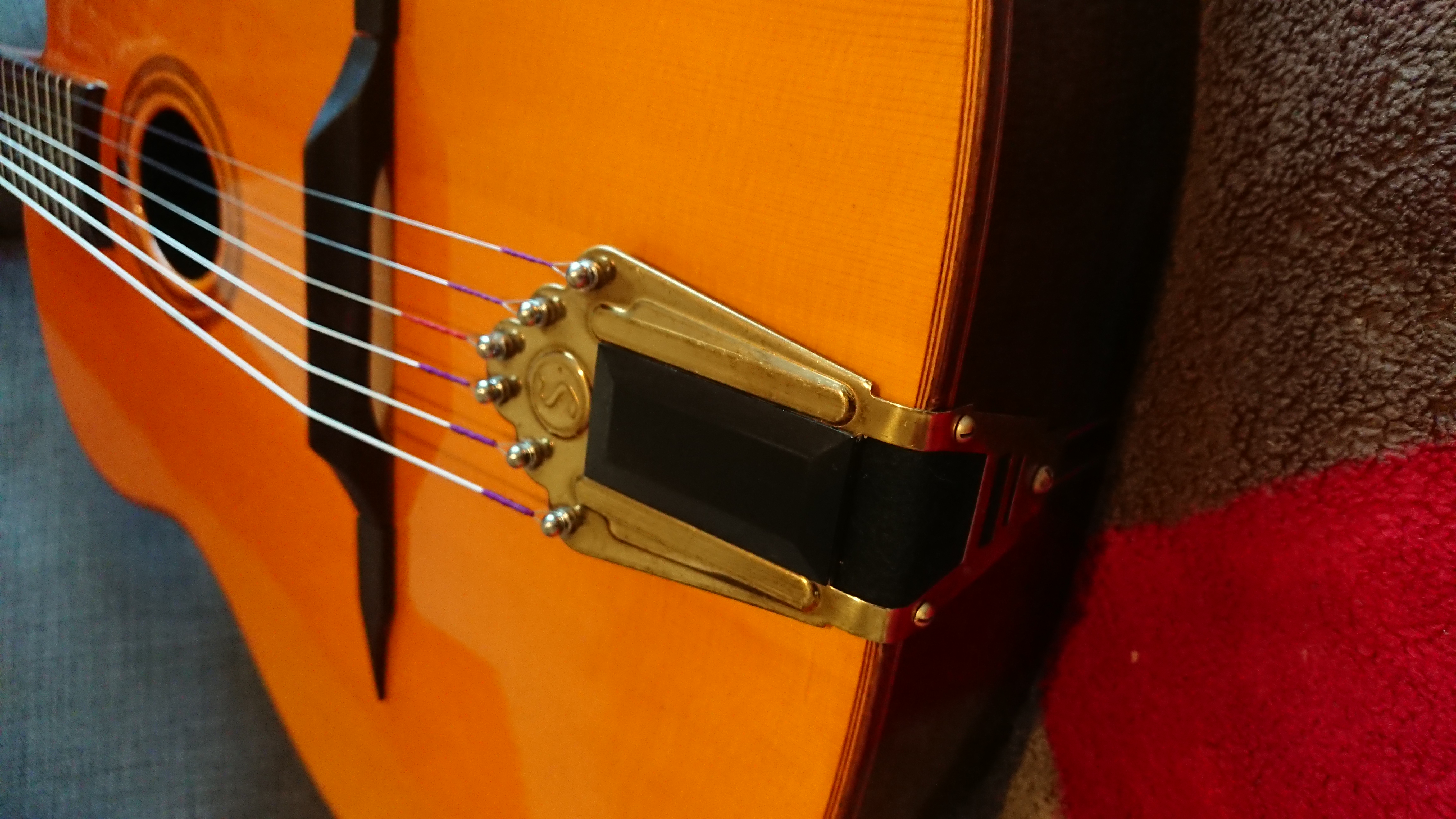 Small update. I could not look at that Chinese GOLD/brand new-looking tailpiece and put one that I aged with vinegar