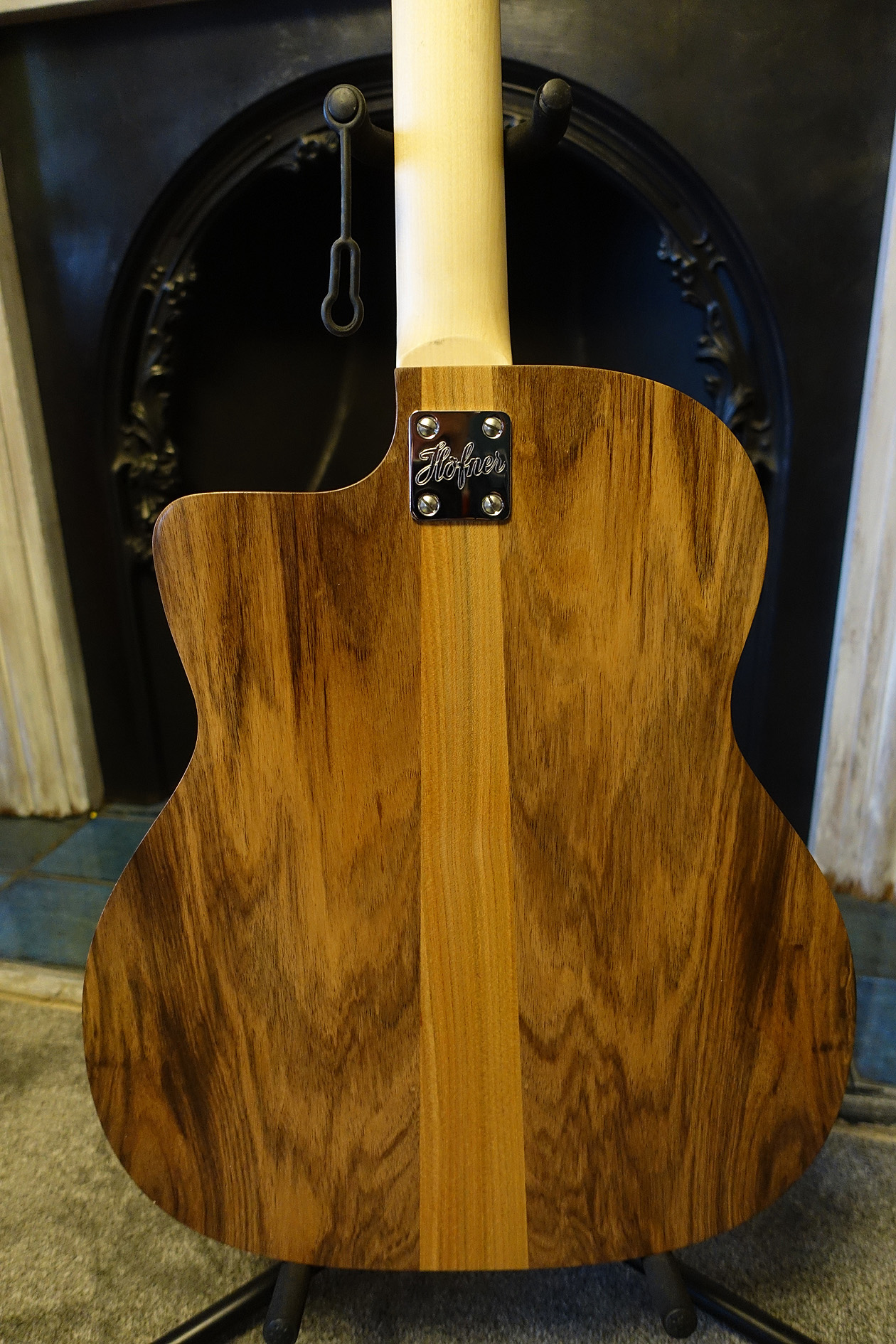 The back has a piece of elm down the centre of the walnut, partly to look nice and partly so there wasn't one seam dividing the entire guitar!