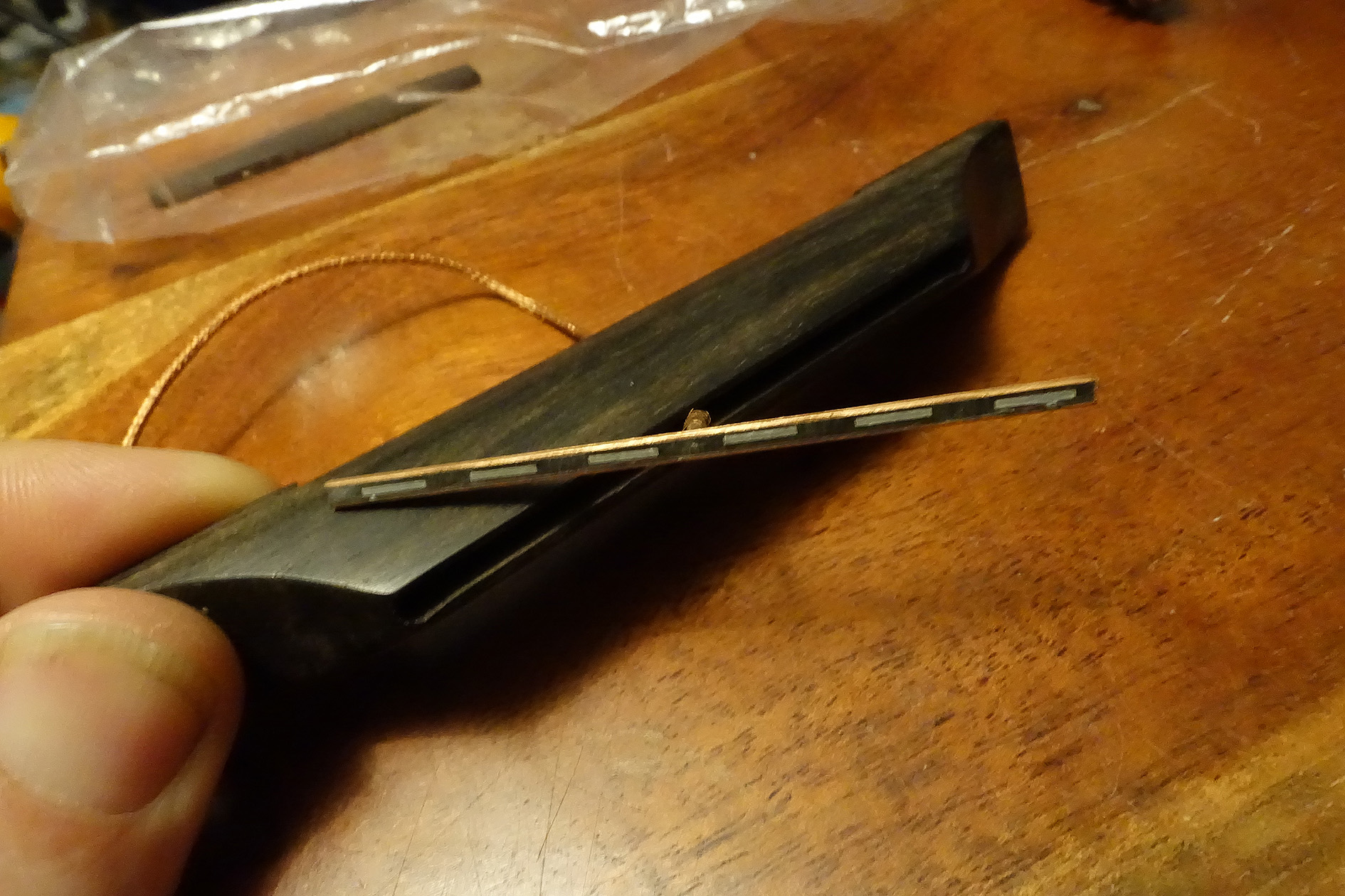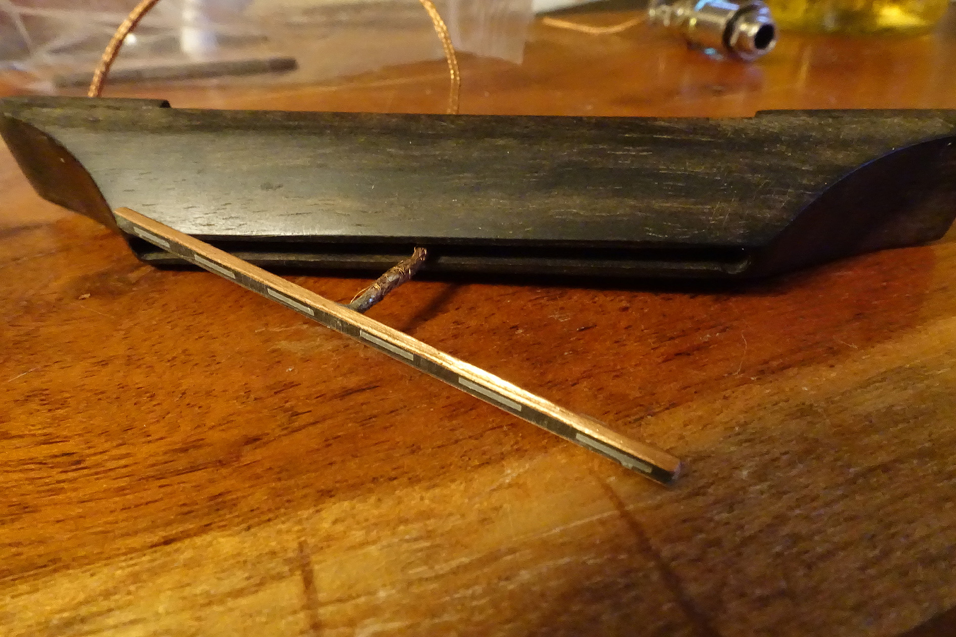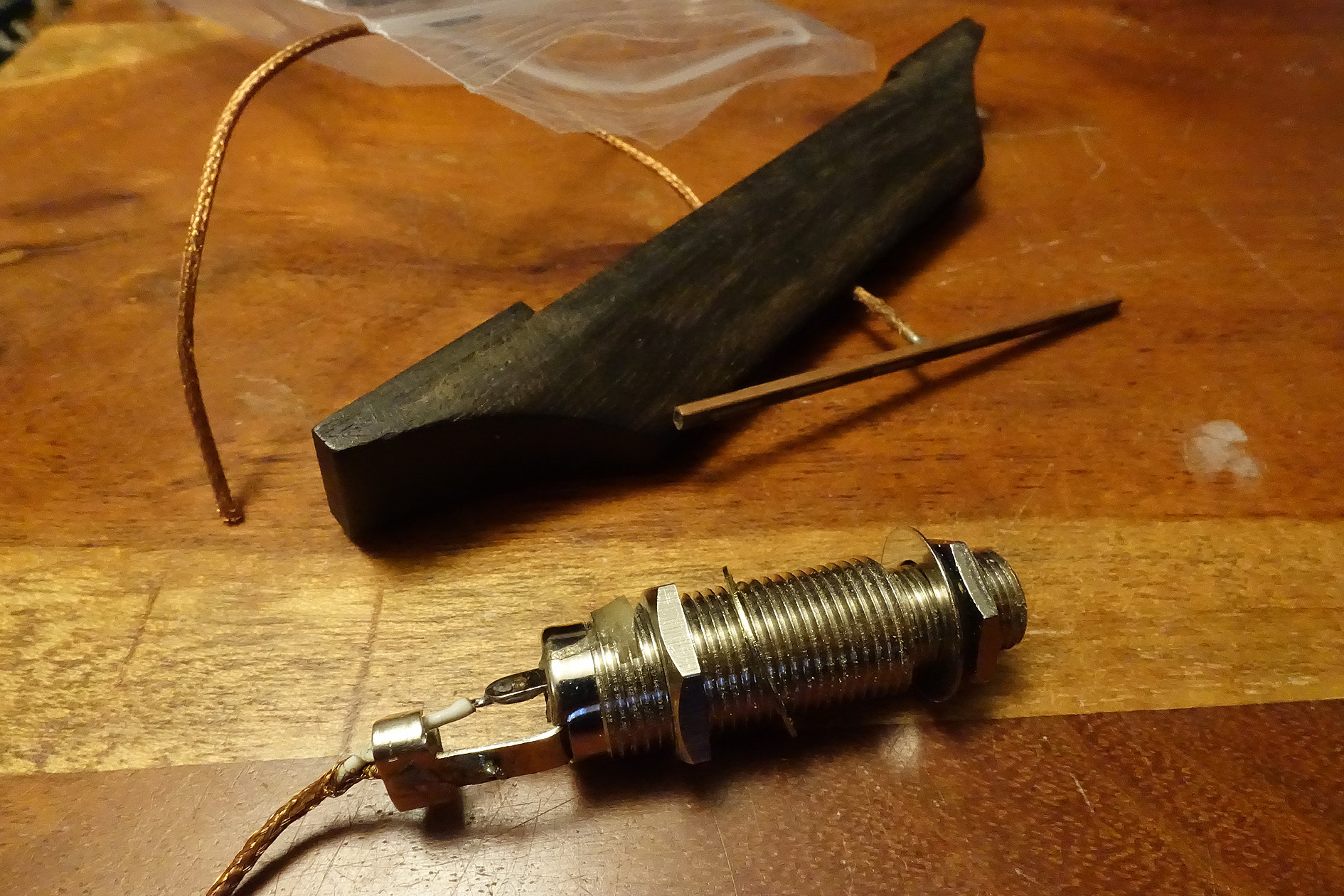 Can anyone confirm this is a genuine Bigtone pickup? It was laid in a narrow slot in the top of the bridge on the Hodson I bought recently, with a thin shim of ebony sitting on top where the strings sit on.