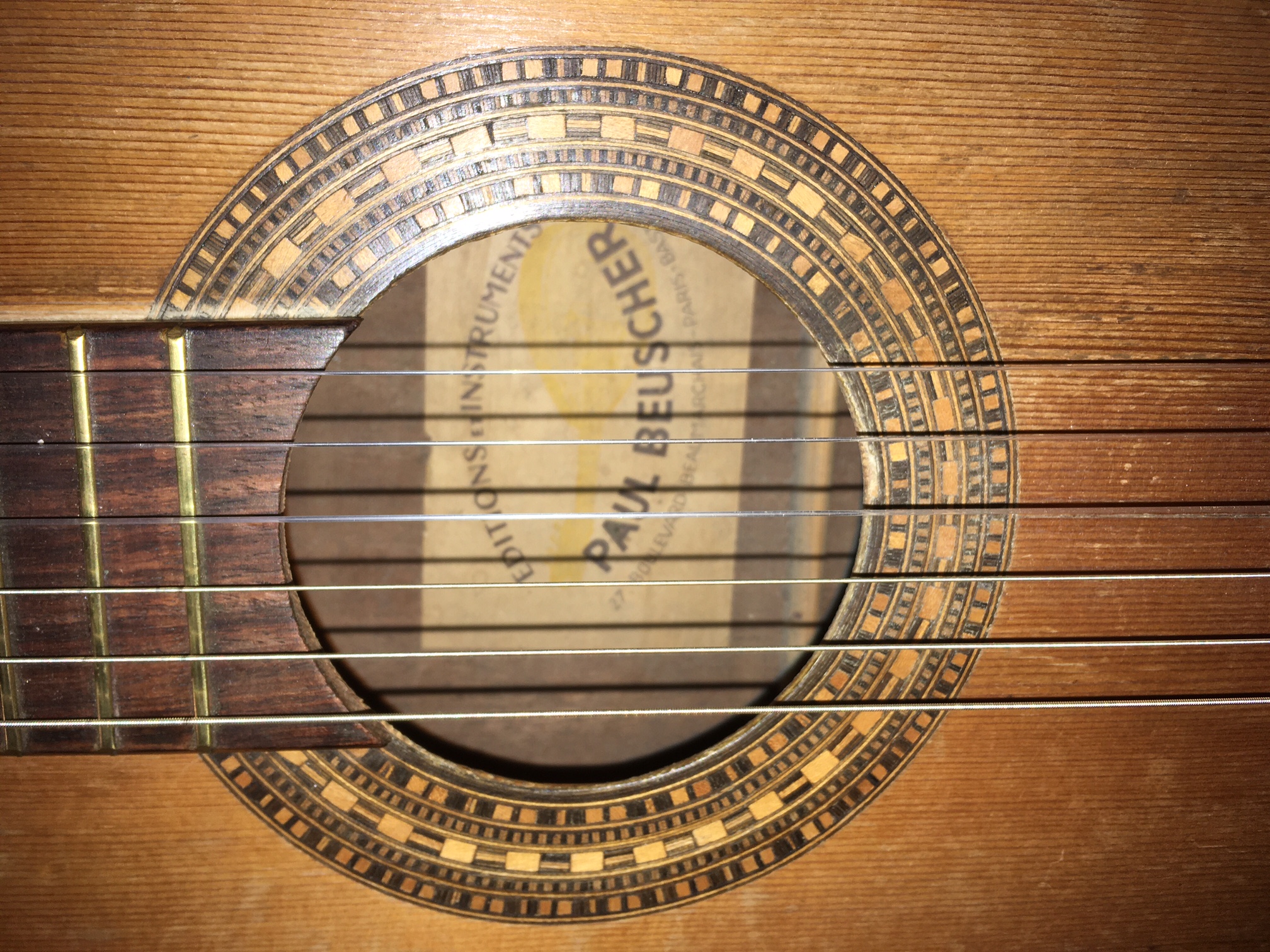 Interesting guitar! I wouldn't know who build it... . I also have a classical nylon stringed guitar, with a 27 boulevard beaumarchais Paul Beuscher label, difficult to tell who build it, maybe Joseph Di Mauro or Bucolo or a collaboration, I don't know.. . It has birdseye maple back and sides.
