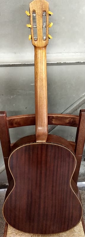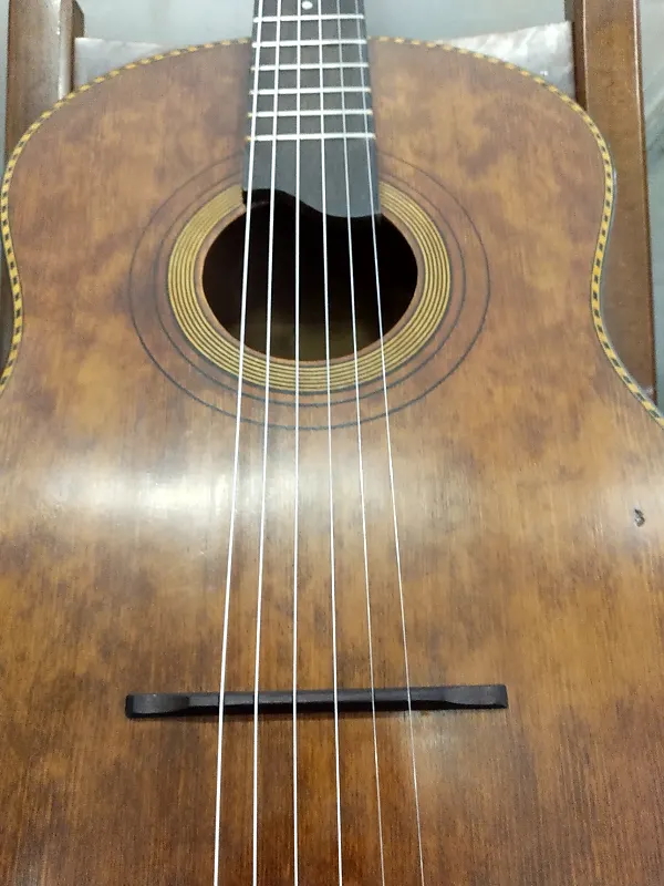 @paulmcevoy75 I am 100% sure. First of all, classical guitars have different bracing. This one is ladder braced with 3 braces underneath the top like most vintage gypsy guitars I have seen. I have a few vintage classical nylon stringed guitars from luthiers like Castelluccia and they all have the typical fan bracing which you see on classical guitars. However it could have been a hybrid guitar that Gerome/Di Mauro/Busato/Castelluccia/Favino/Carbonell etc. made in that time. These hybrids are called "type Brassens" guitars because of George Brassens almost only played on this type of guitar, he began with Gerome's, than he played on Busato's and than on Favino's. These hybrids are flat top guitars and as far as I know all ladder braced (I own a Gerome "type Brassens". The top of this Castelluccia however was varnished before the fixed bridge was placed. That is another reason why it is not original to this guitar. Also the position of the bridge on the top was 2cm off... . Now I know some of these old guitars don't always have the right position but this is quite extreme. The scale on this guitar is 64cm and the saddle with the fixed bridge was at 30 cm from the 12th fret... The top of this guitar is arched, I have never seen a fixed classical bridge on an arched top guitar.. . Hope this serves as an anwser!
