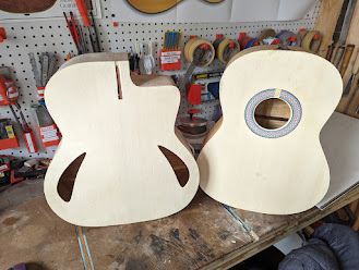 The original big mouth has an accidentally very thin top, I'm not going as thin on these ones. I think it will be maybe a better compromise between a loud guitar and a more traditional sound. We will see......