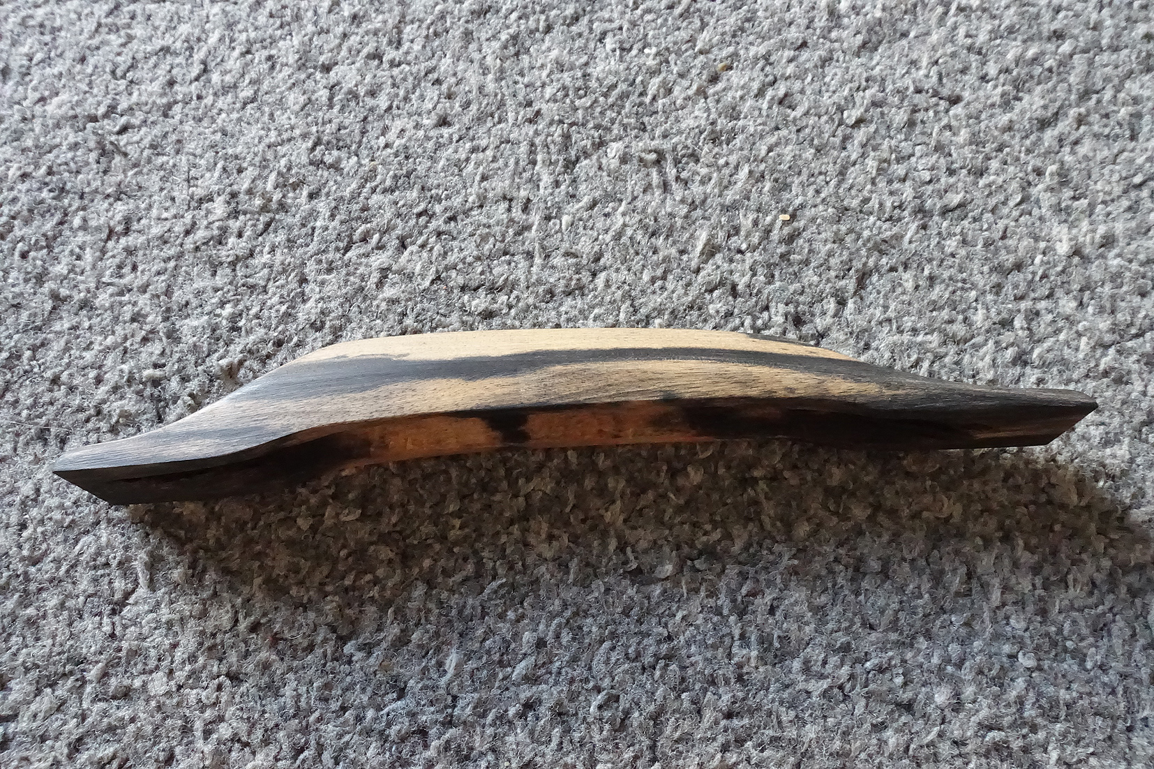 I made a bridge this arvo from Pale Moon Ebony. I'm also going to try one from pine, but add a bone or ebony strip for the strings to sit on. This morning I went for a walk in the hills and found a nice stag antler - could it make a good bridge I wonder?!! I may try cutting it on the bandsaw.