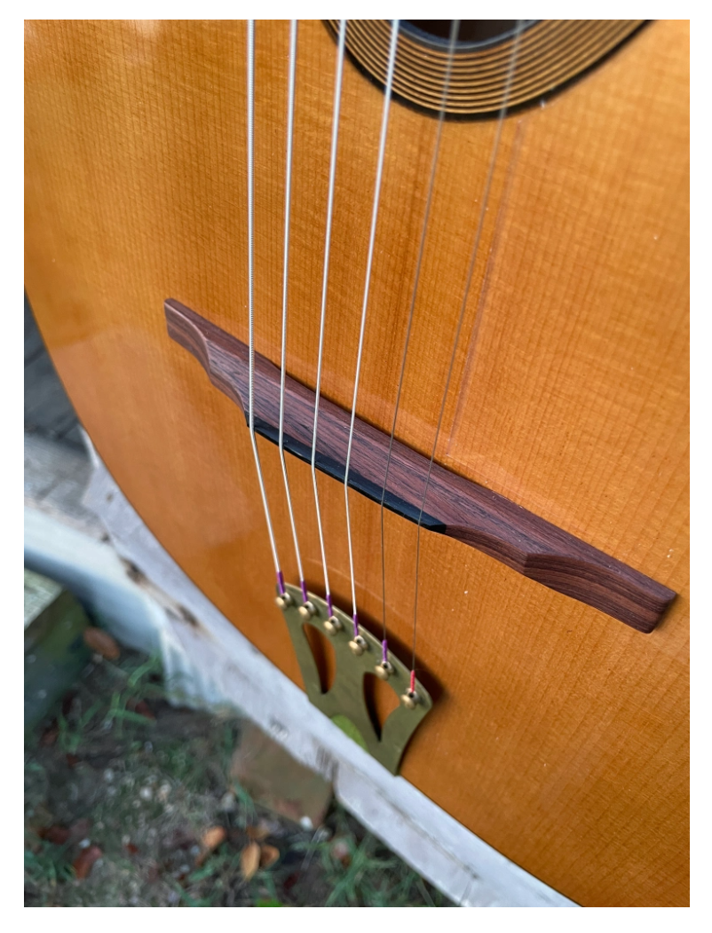 @Jangle_Jamie FYI, "ebony" bridges for Gypsy guitars, including Dupont, are just tinted rosewood. Actually ebony is rarely used as it's too dense, resulting in an overly bright, thin tone. Maccacferri tried using ebony on the early prototypes but it was abandoned in favor of tinted rosewood.