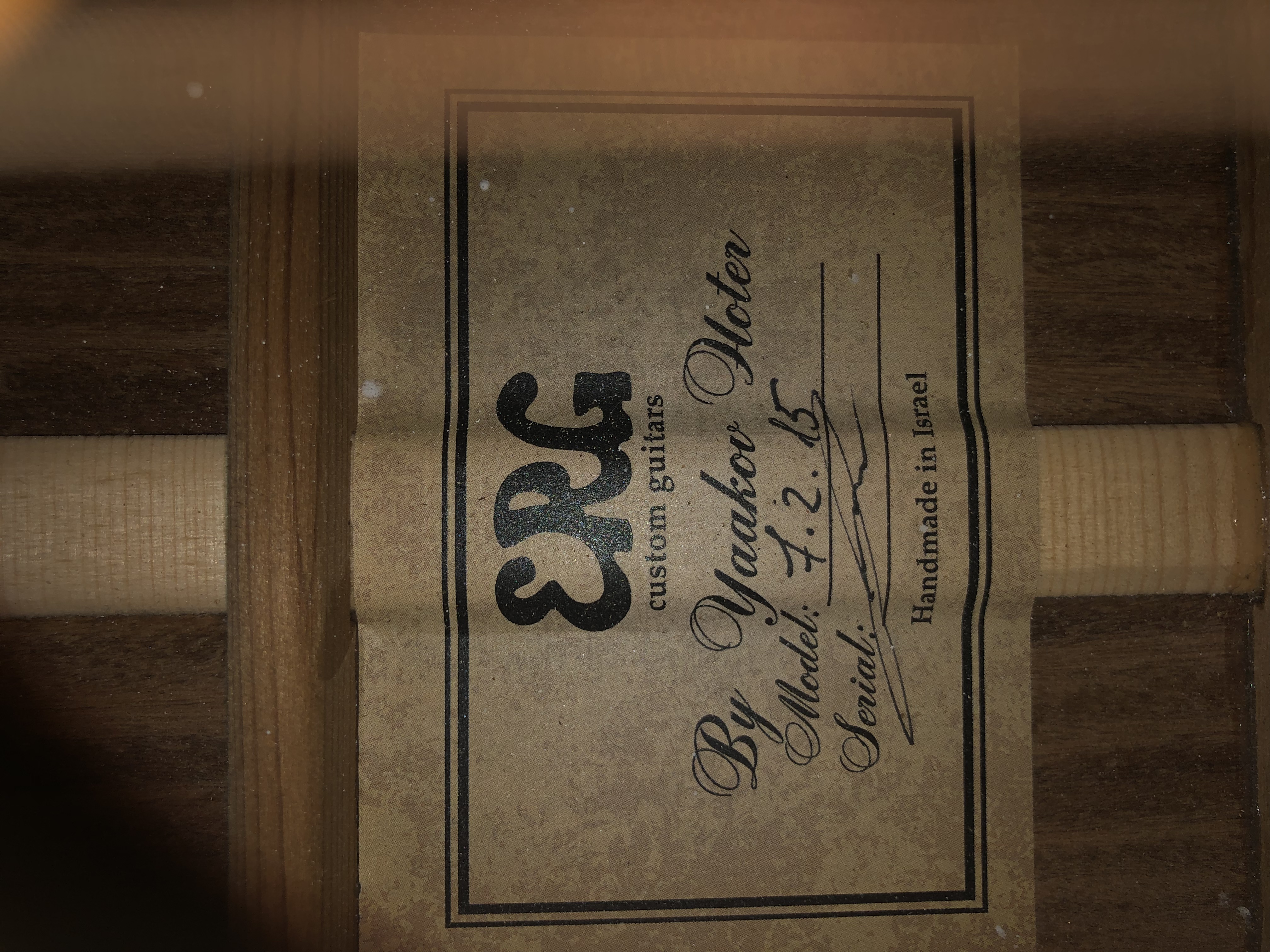 Nice guitar! I bought an ERG for a friend in 2022, and it's a superb guitar!!! It's very lightly braced and you feel the sound through the back and sides. I wonder what your back and sides are?