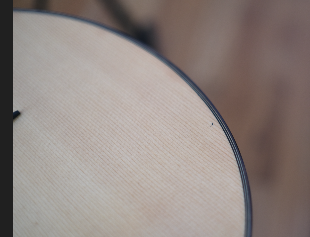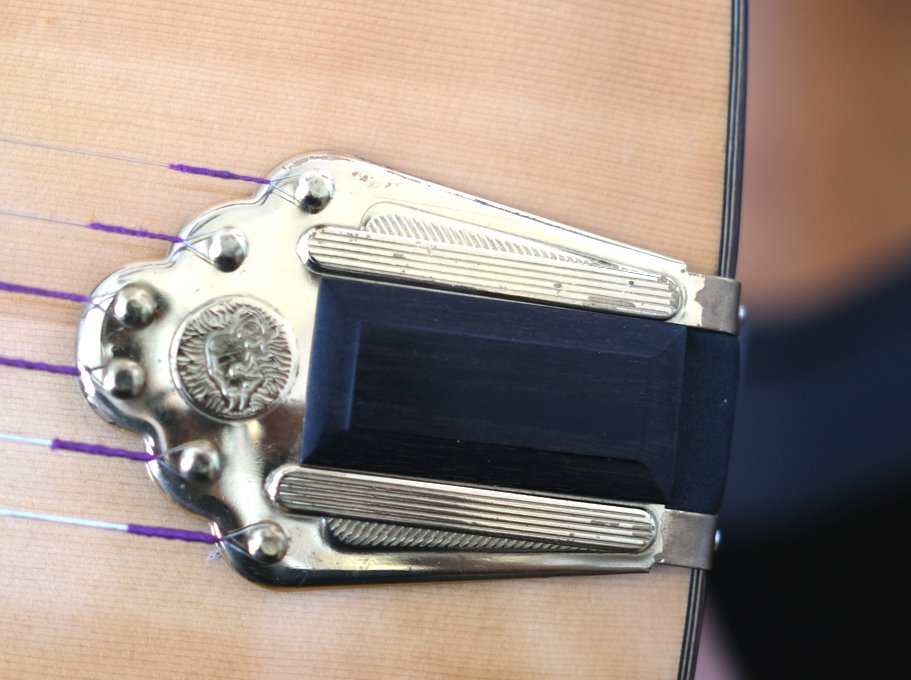 • Last tuned up in Finley and Gage in Maplewood NJ in 2022. Finley and Gage replaced the tailpiece as the original had broken - hole positions were slightly different so they were redrilled. Replacement tailpiece is Altamira which Michael at Djangobooks had, some scuffing of the gold plating (see photo).