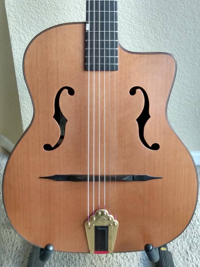 I am considering selling my 2017 Altamira M01F with big, beautiful inlays and I believe it has a Cedar top. It is probably my loudest guitar and has a fairly authentic sound, nice 18 fret neck, ebony fingerboard on a very straight neck, with an Altamira case that is as pristine as the guitar. The Altamira has a few little hard to see marks and it would be difficult to call them scratches, nothing that goes through the finish.