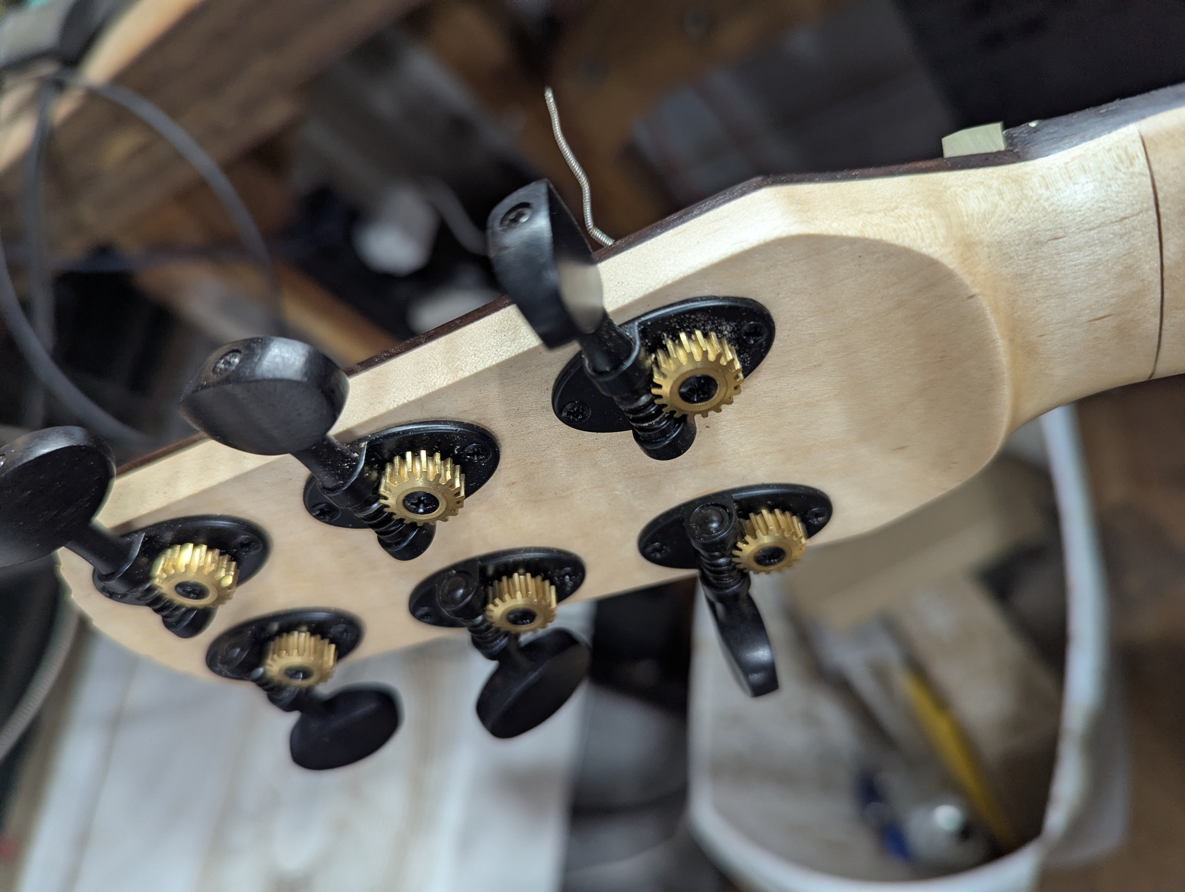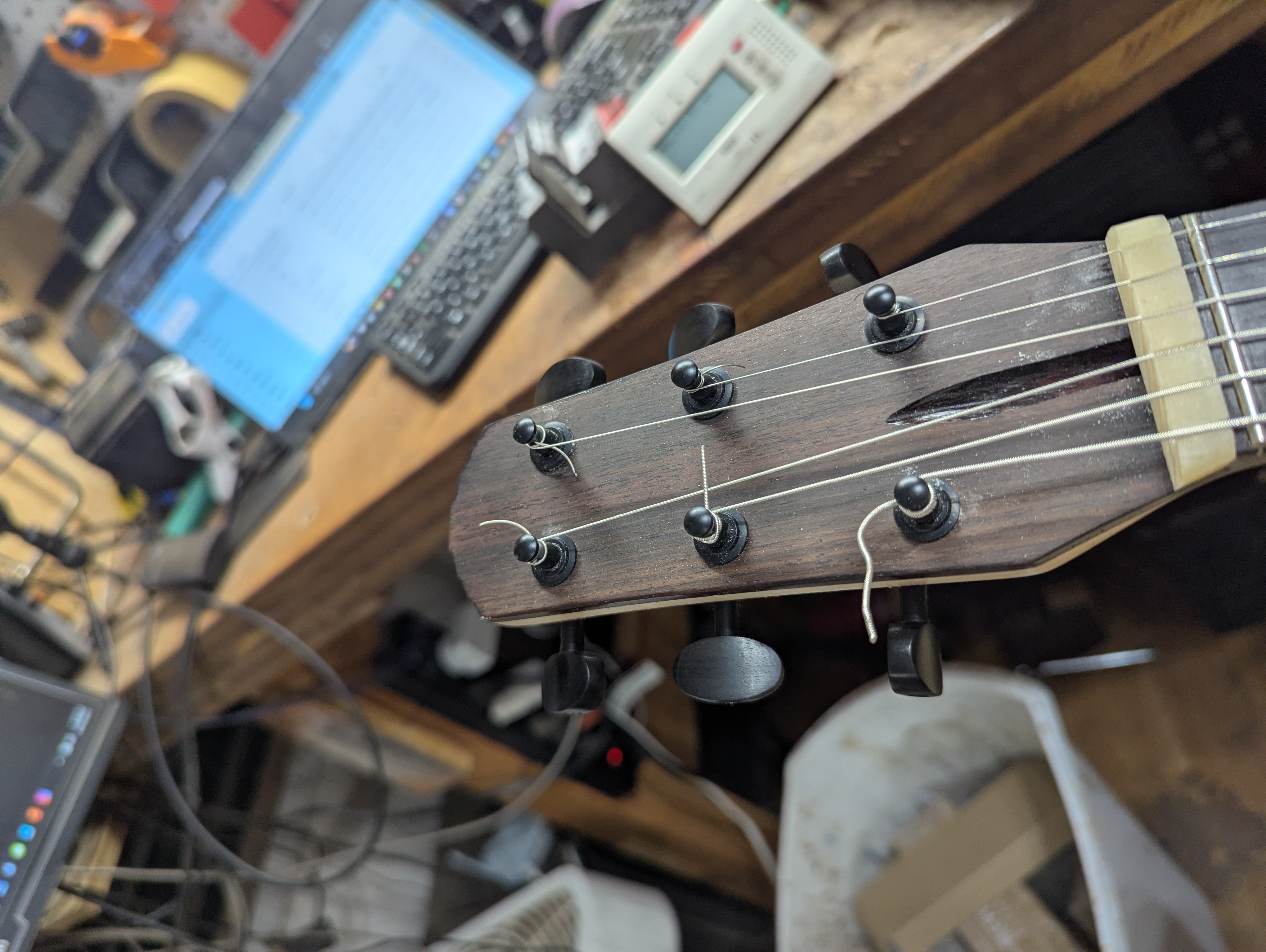 I wish I had saved all the tailpiece experiments I've made this year. I think maybe I've made like 20 tailpieces for 3 guitars. I learned a lot in the process. I think this one works.