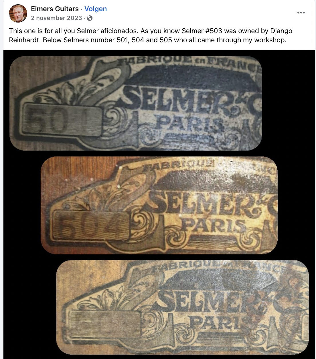 Selmer #505 itself is an authentic Selmer. It has been examined and authenticated as such by Leo Eimers (Dutch luthier and the reseller) and by Jérôme Casanova (Parisian luthier/reseller) who is situatied in Charle's old shop. Photos of the instrument taken by luthier Adam Berten can be found on my Instagram.