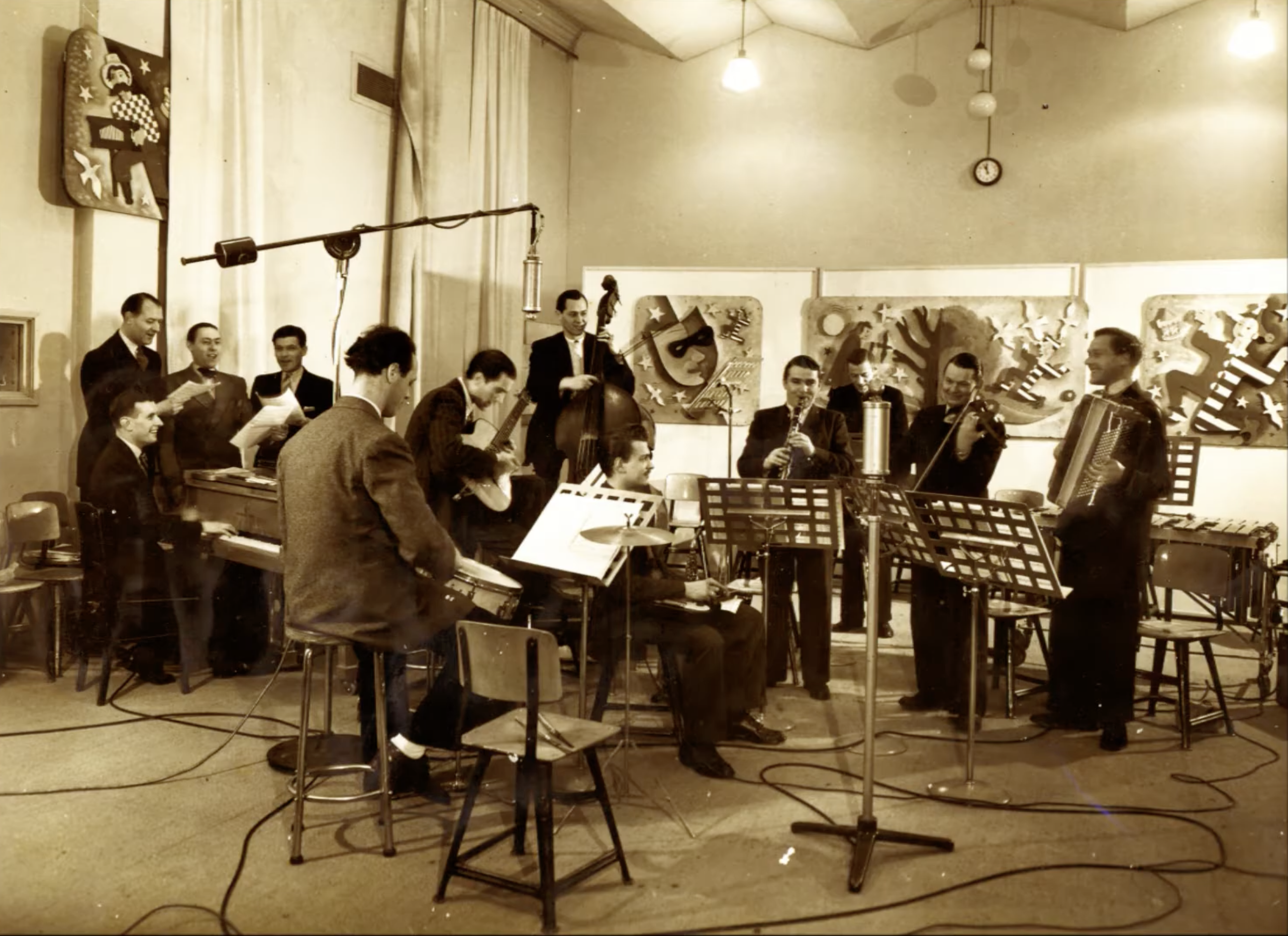 Piet Baan with “Orkest Zonder Naam” (1949), holding #505: