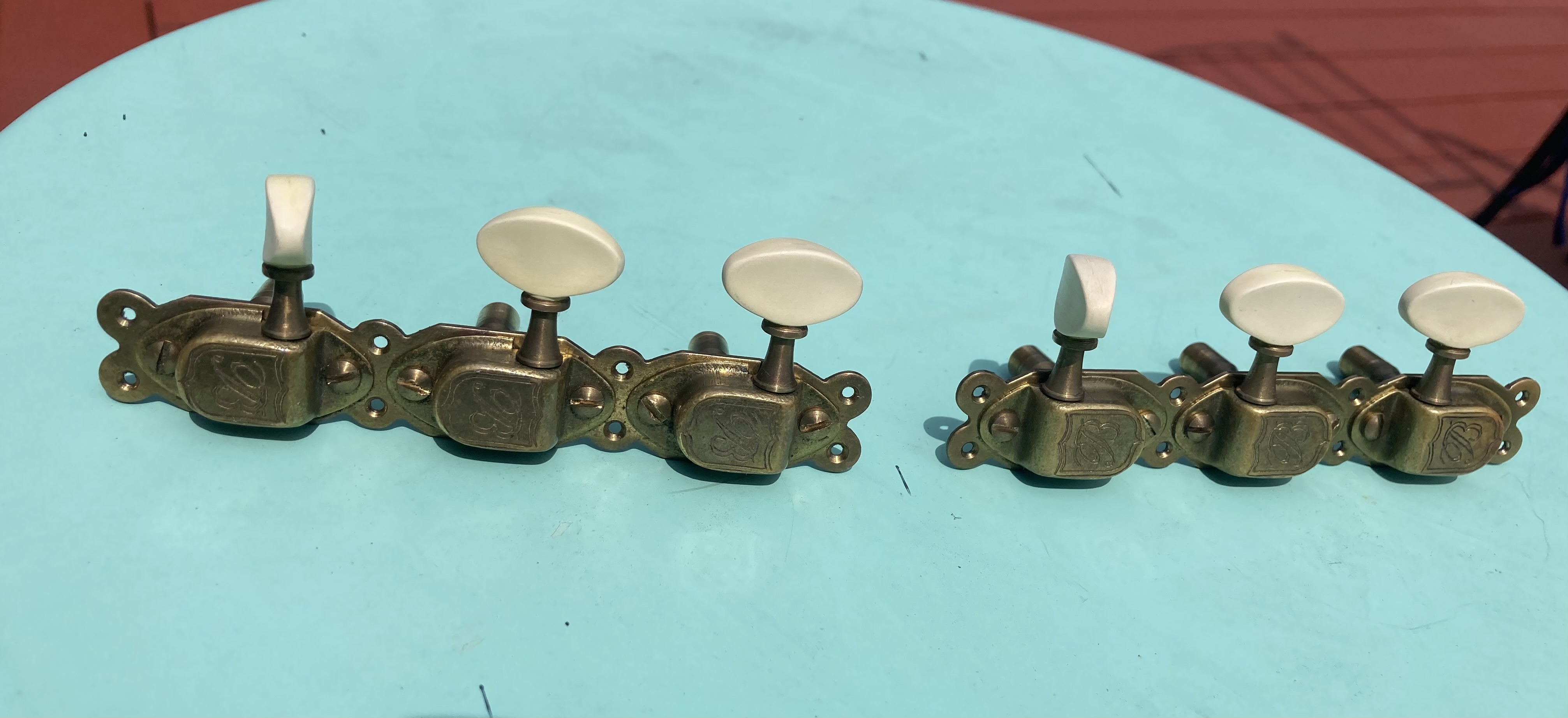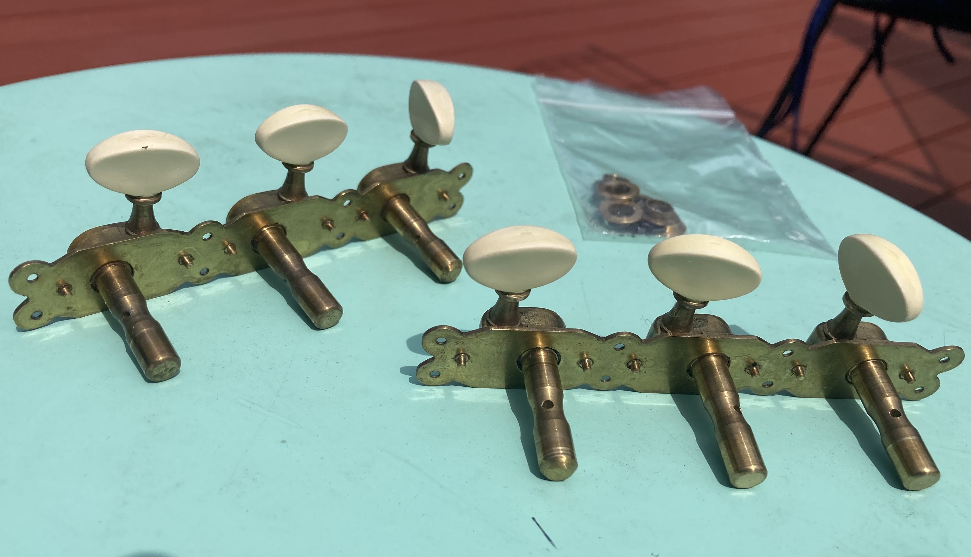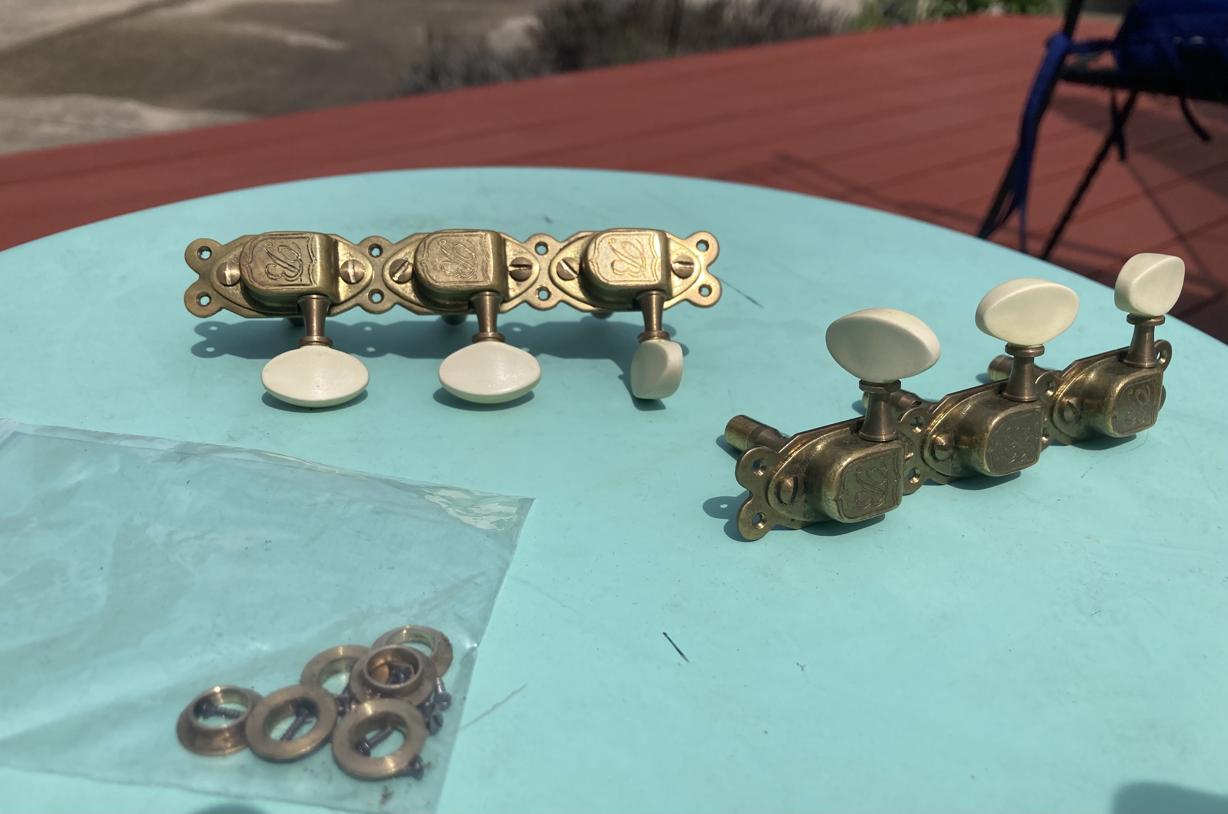 Tuners from a 2017 Barault Selmer. I recently put in 3 on a side Schallers. Fully functional, MANY gigs on this guitar but they cleaned up very well. JB sells these for about $320. Include inner ferrules and the tiny mounting screws.