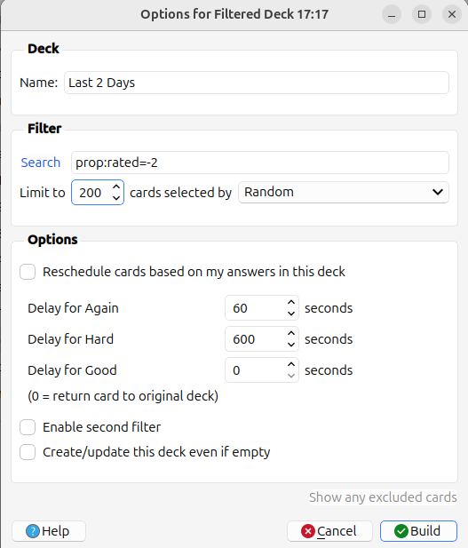 Ah I see, you sort of create a sub-deck. That's pretty cool too. This time I just needed it to remind me what I worked on. But this can come in handy. Maybe you select fewer cards that you want to put extra focus on and specifically try them in a live situation. Then you create this filtered deck and ultra focus on those only. I suppose in a way that's wanted to do, I just wanted to do it on my own. Thank you 👍