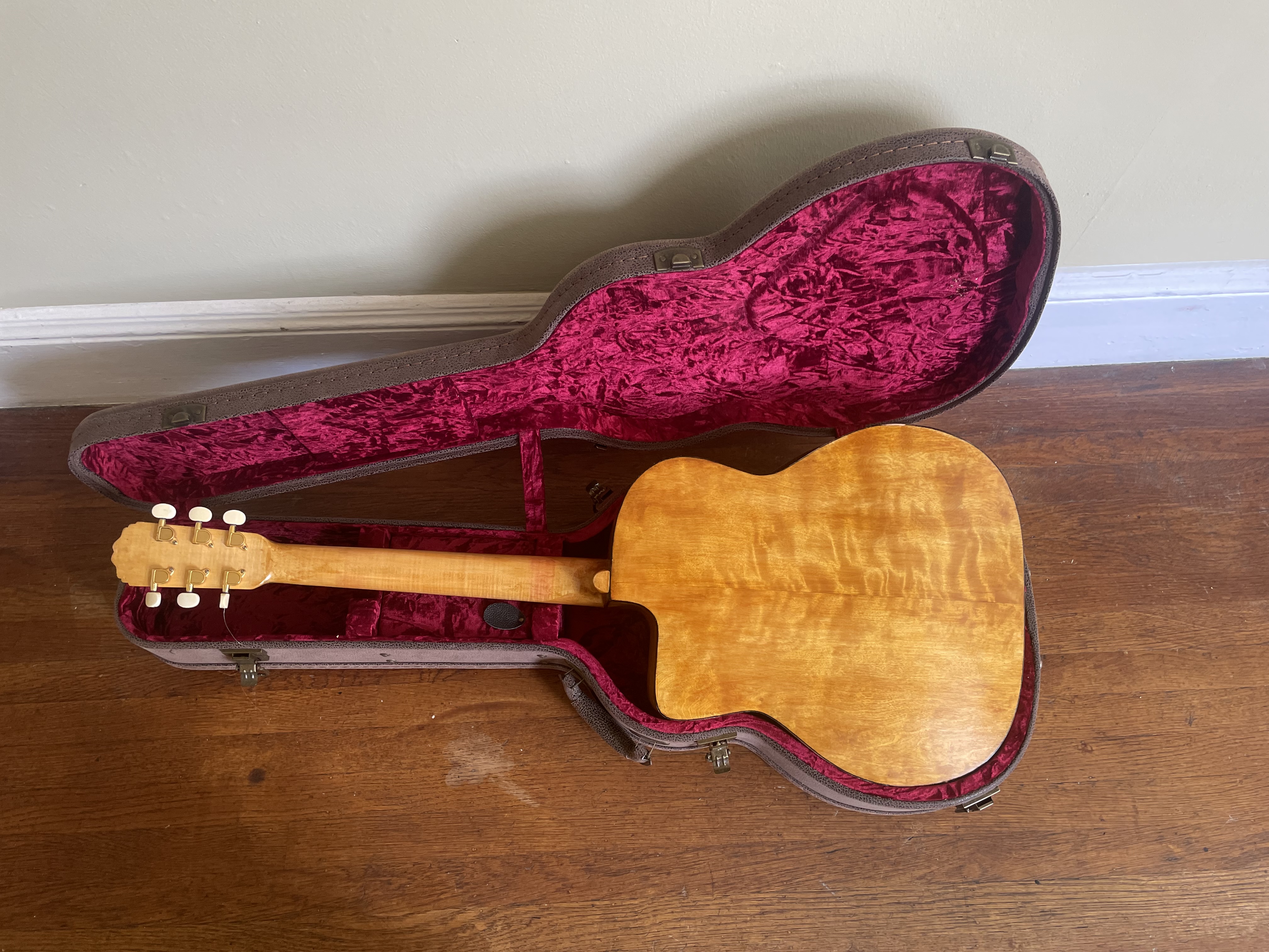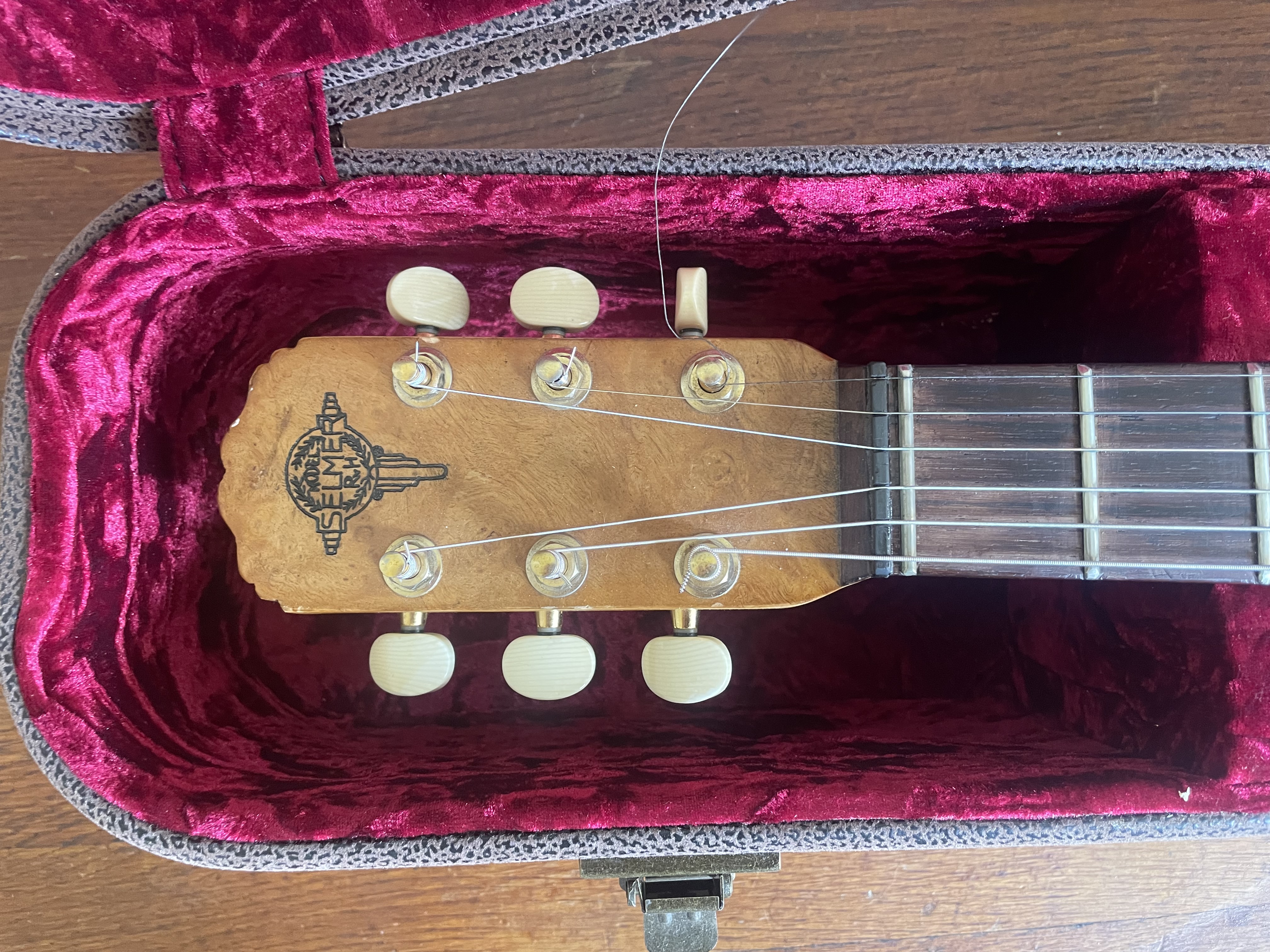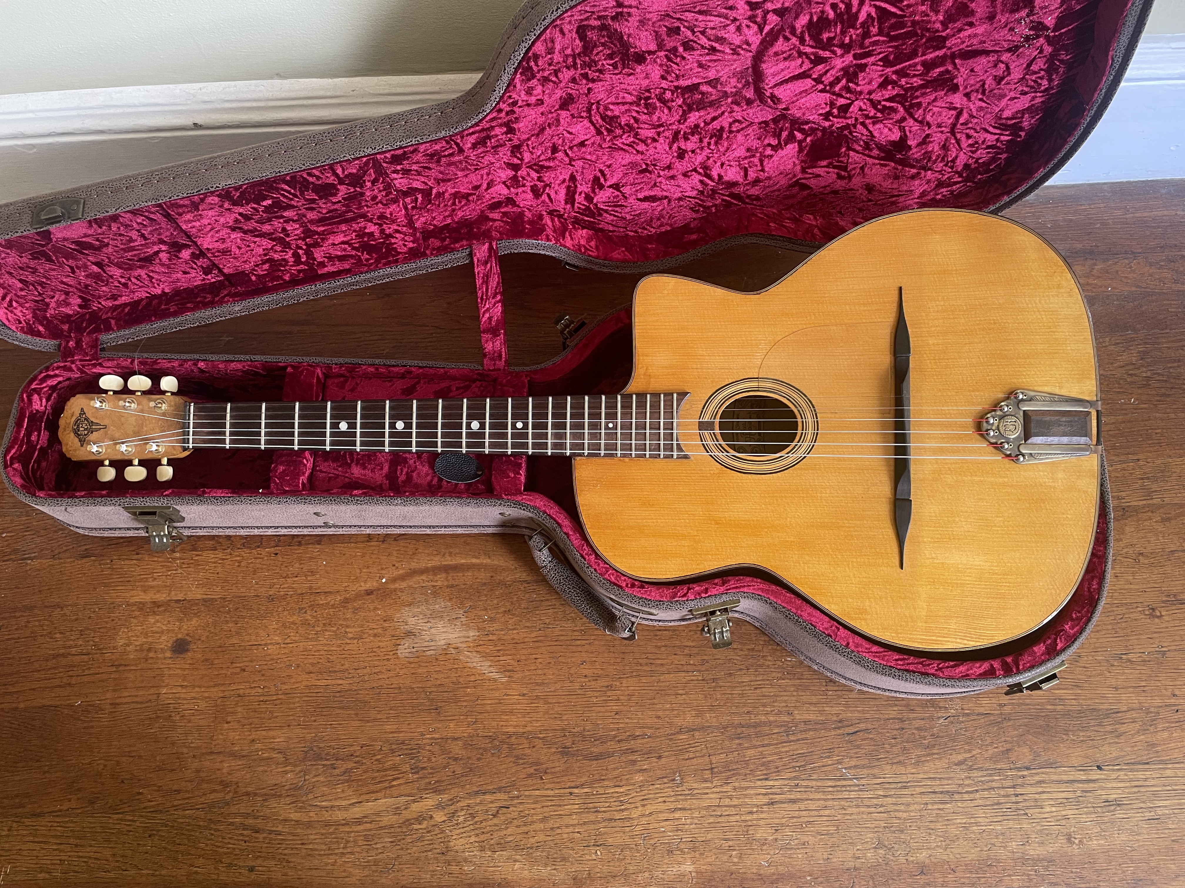 I picked up this Rino from this site last year. It has an incredible old world sound and vibe but have to part for economic reasons. Video and specs can be seen in original listing linked below. Per communication from Michael "there's one top crack running from the pickguard area towards the cutaway, just below the soundhole.You can see it on the photos. Anyway, it's just the typical sort of top crack you often seen on these guitars and is stable. I don't see cleat in there but it looks like some glues was used to keep it close and since it runs between to braces it can't really get any bigger."