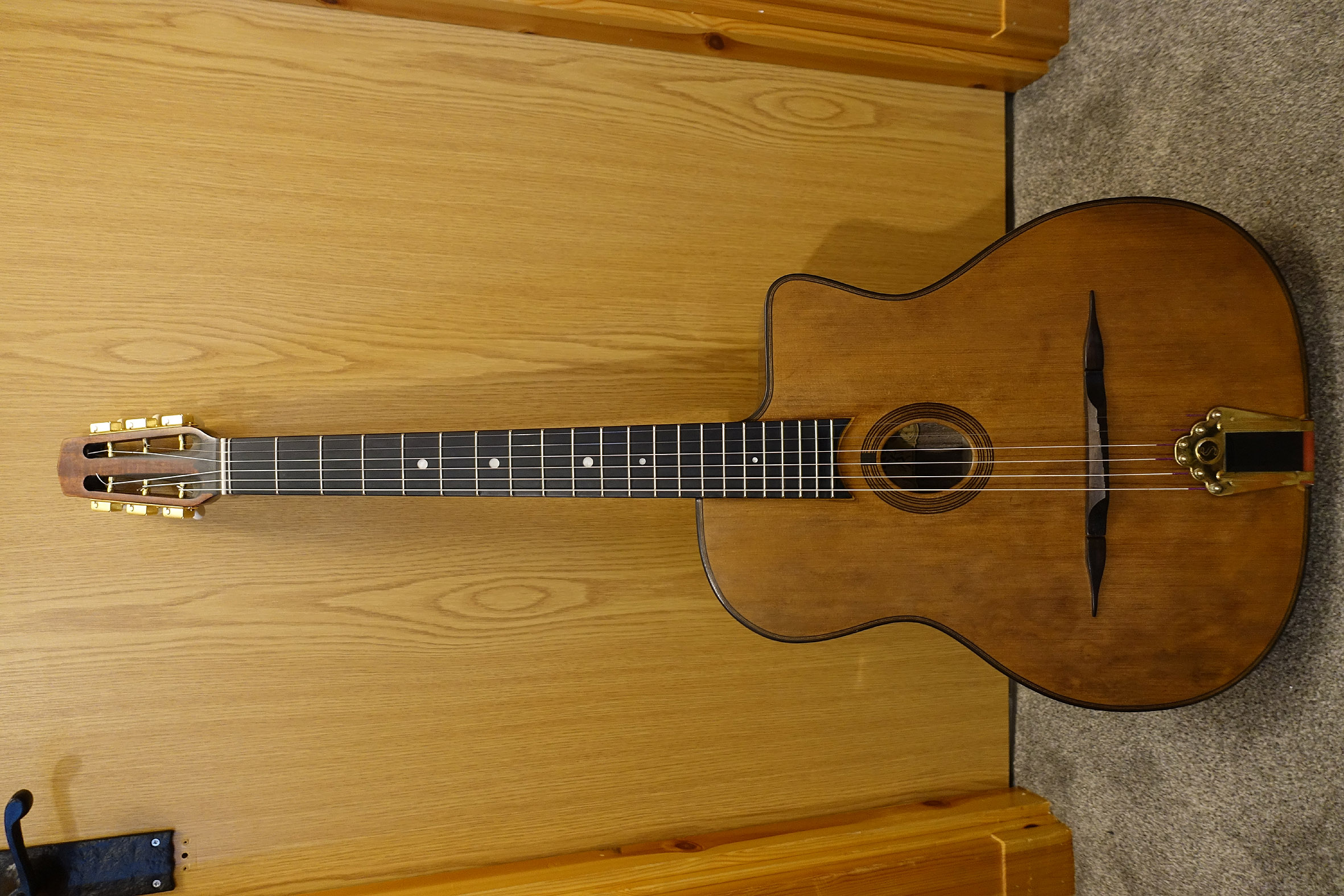 My official Gitane 255 - see the detail photos of the wood above - (bought in the UK, and not a 'second' from Aliexpress) has the most wonderful tone - vintage and very woody. The problem I have with that particular guitar is the neck is a very shallow C type profile and it's not comfortable. The Aliexpress 255s however have thicker C shape necks. The other issue with these 255s is that they have quite a shallow break angle and very shallow bombe on the top, and shallow arch to the back - that all adds up to projection which doesn't seem to cut through at jam sessions. For recording and general playing, my 255 is amazing.