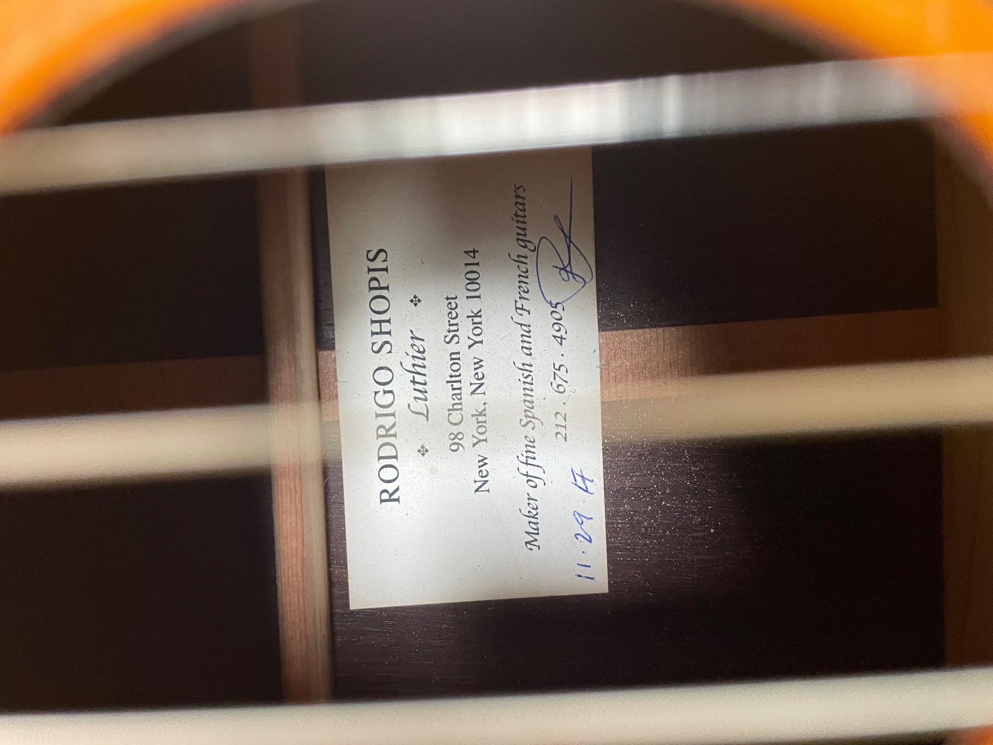 To my knowledge, I am the original owner and bought this directly from Rodrigo. Though I didn't buy it in 2017, the story has it that Rodrigo kept this guitar for himself until he agreed, with much prodding, to sell it to me in 2022. I felt myself fortunate.