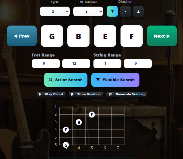 So I built a simple web app called VoicyLab that shows every possible fingering for any four notes on the fretboard, with a “Next” button to cycle through options and flexible search for easier, more practical shapes.