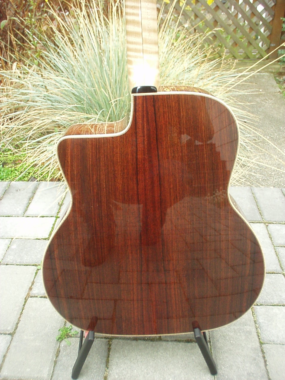 If this is the one that was hanging on the lower left peg of Alain's leftmost guitar rack at Djangofest - it's a nice sounding guitar. Too bad the decoration pumped up the price so much - a guitar with that voice deserves to be in the hands of a working musician.