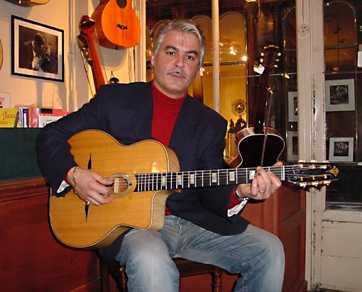 ...you can hear that it's a very balanced, full bodied instrument. But has enough kick for lead Gypsy playing. I think it's the right guitar for him....his recordings with the Dupont VR were a little brash in my opinion: