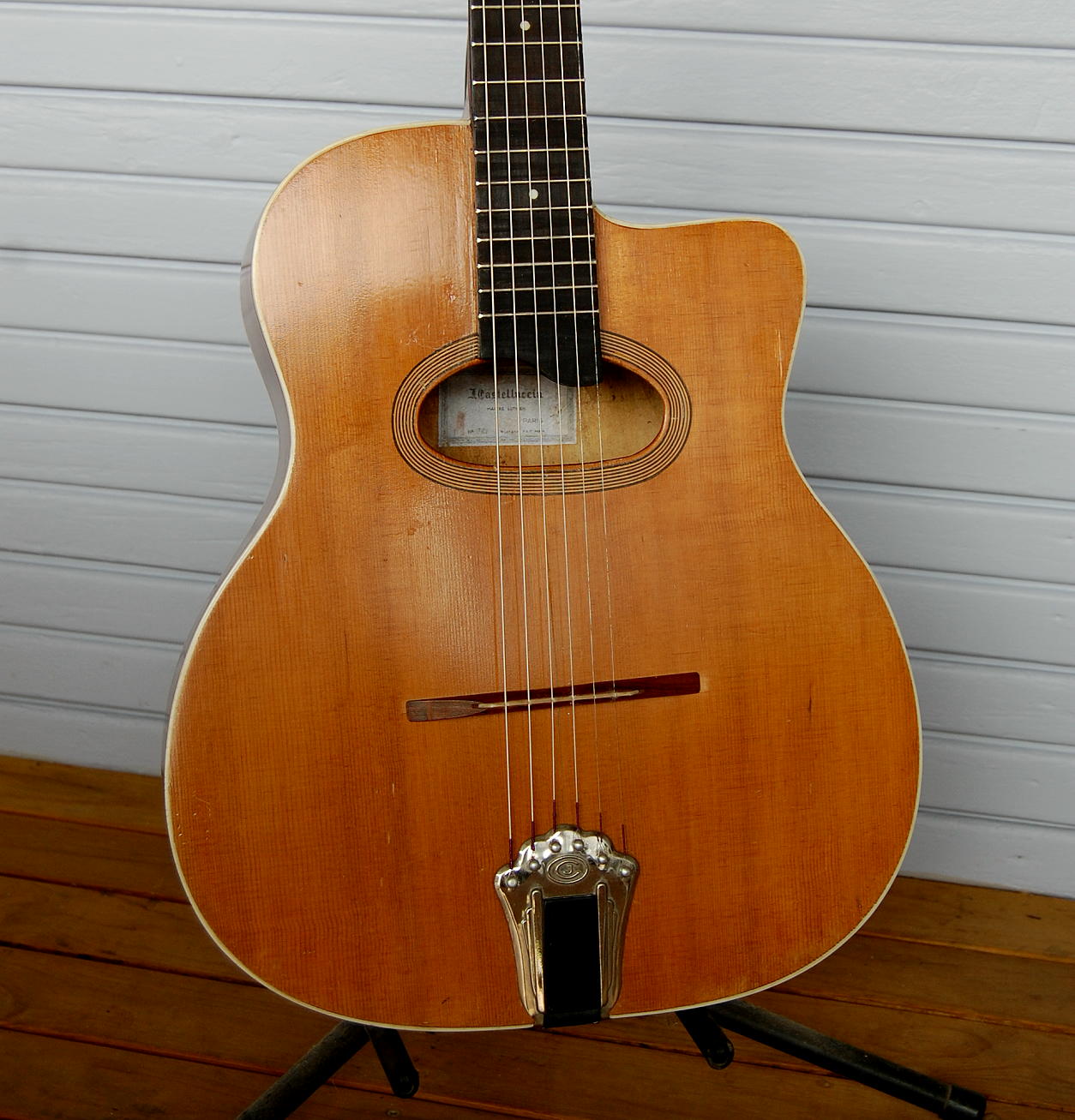 Hi, I am selling my Castelluccia as I can't get on with the feel of the neck, I have been lazy playing easy guitars like Gibsons and Fenders for fifty years and am too old to relearn on a bigger wider neck. I am relatively new to the GJ genre and I have other guitars by Di Mauro and my #1 made for me by Tony Petrarca that have slimmer necks. Otherwise, it has a great sound and I would love to keep it, but I find I am not playing it so better it goes to somebody who can use it. I was asking AU$2250, but have now reduced it to AU$2000 (which today is about US$1375 although that can fluctuate daily) if bought direct as I would save on the ebay fees.