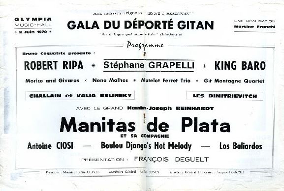 Manitas de Plata was one of the Baliardo clan. Jose Reyes is also listed on that bill, he was the greatest singer of the style and toured with Manitas for along time; I never saw Jose but his sons Nicolas, Paul, François 'Canut' and Patchai were of course later better known as the Gypsy Kings, that group also featuring various Baliardo cousins including guitarist Tonino.