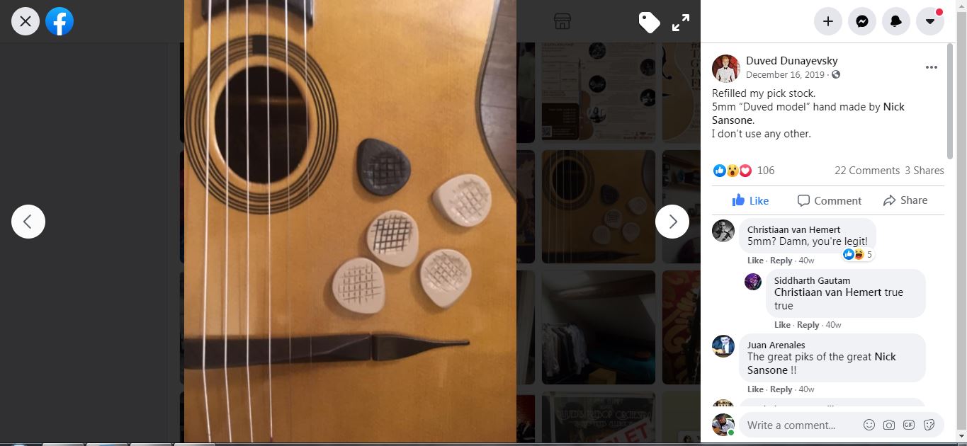 Side note: even if you find you don't like one of the picks - keep it on you when you go to gigs/jams. It's an investment in making friends. Just like bumming cigarettes, guitarists bum picks - and it's a good way to meet some new people "oh, you forgot your pick? Here, you can borrow my Wegen" is a good way to break the ice.