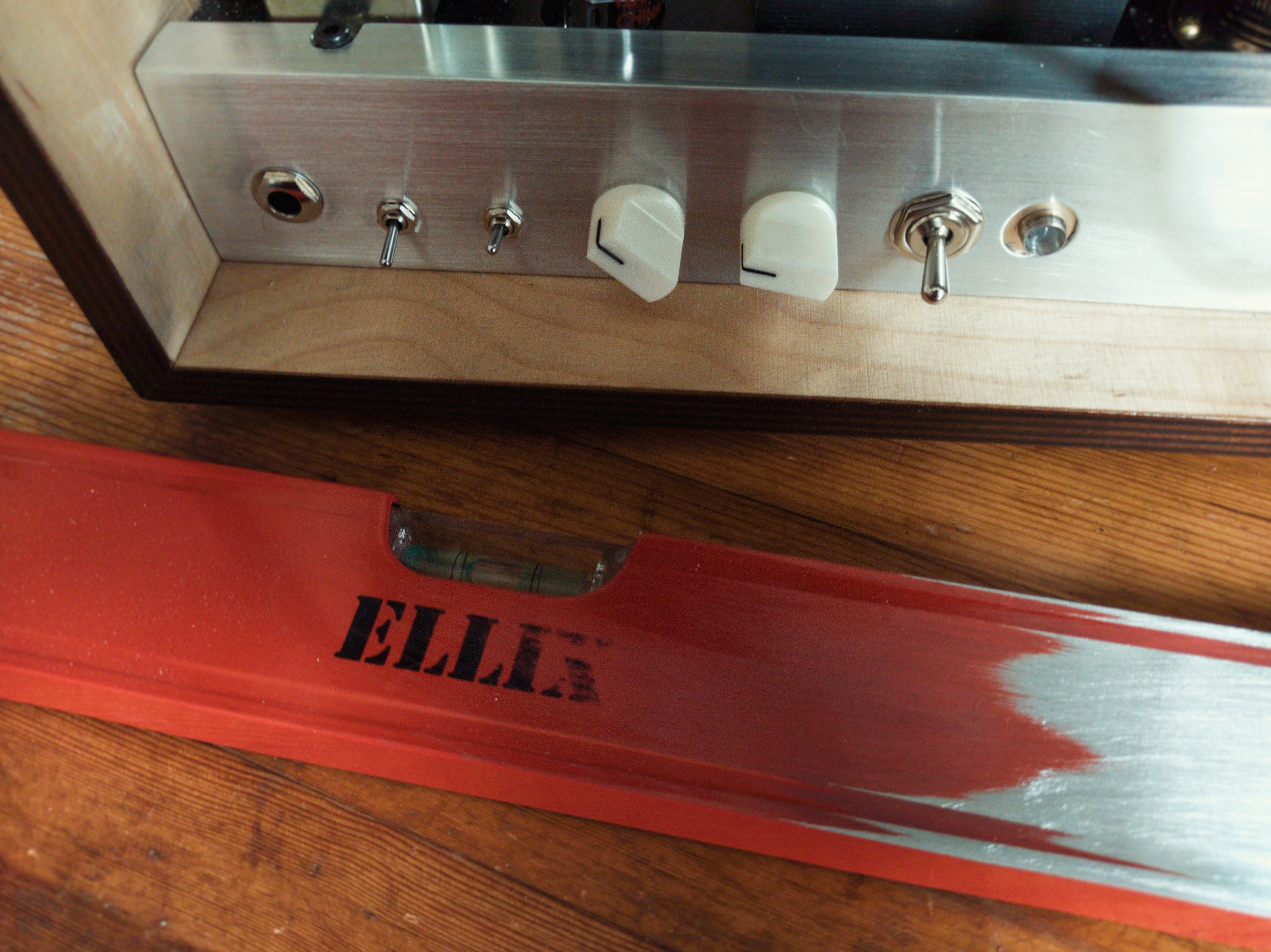 Working process continuing! All day sanding of...yes you see wright...spirit level. Not easy job, but result is better than I expected. And inside cable holder. If you are asking what's doing this tube-ish object things on the right.. just looking good.. that's what they're doing! Ha! Just vintage bulb sockets... So nearly finished.