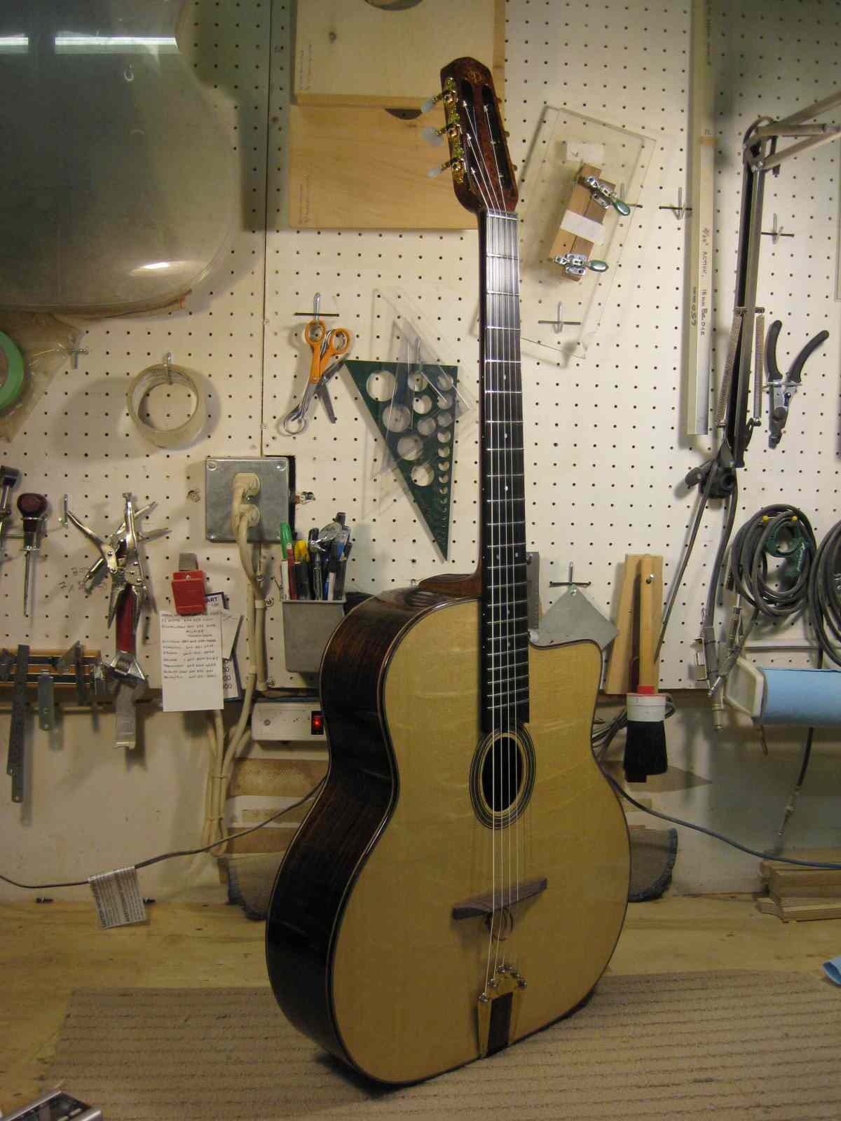 Here is a photo from when Shelley just finished it, a photo of the guitar in the case and its label.