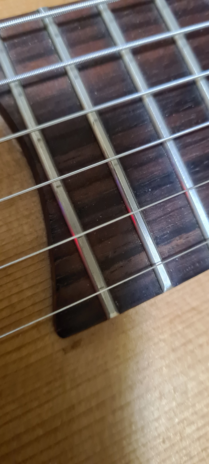 It's difficult to say without knowing more about the guitar. It appears to be a Fischman and a quick google search brought up a lot about Fishman, but nothing about Fischman. Most guitars could benefit from a set-up by a good repairman or luthier, and frets can be leveled, crowned, and polished cheaper than replacement. TFOA is located in the Netherlands and they do great work on Gypsy Jazz guitars. You appear to have an Altamira M01, so give us a comparison, please. Congrats on your new purchase!