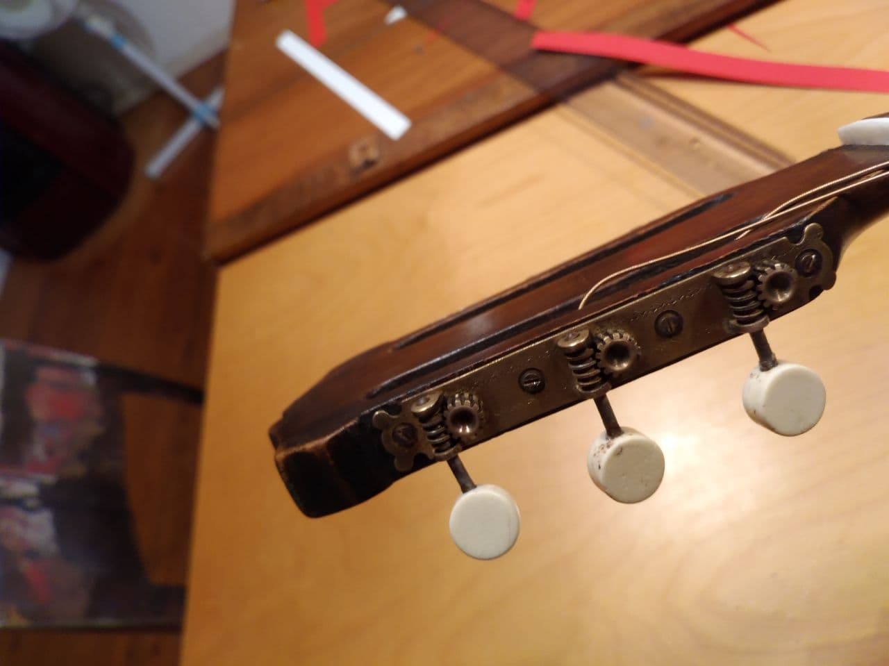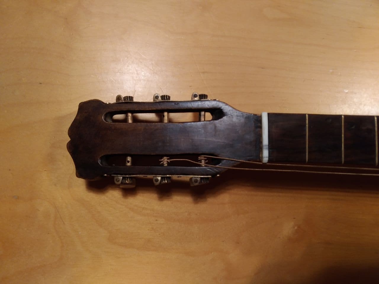 6.Today I made new buttons for the tuners and they came out pretty nice too and I'm working on making a new nut.