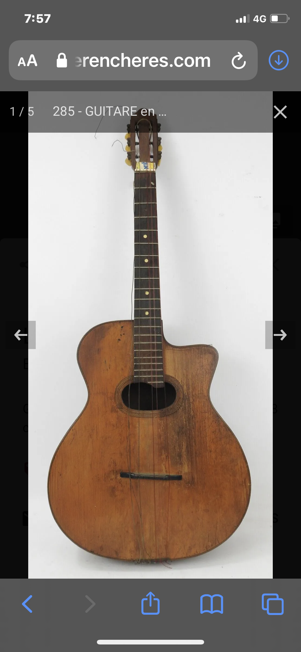 Yes, I got those notifications too. The Busato advertised as such will sell well enough, even though it is described as a 12 fret model in rough condition; top unglued with several cracks and binding missing, and the back has the same faults plus 'damage' but no photo to explain. But the 'Maison du Jazz' could be the sleeper. I had read before that these were made for the store of the same name by Busato. I know we hear that claim all the time but although I can't remember where I read it, I know it wasn't just some ebay hopeful. It certainly looks right. Busato supplied his own shop 'Toute Pour La Musique' and probably Beuscher and Paris Musical with the bulk of the cheaper ones from the 1950s made by Pierre Fontaine and the deluxe models by Pierre Calza but this one does look more like an earlier one. Certainly the outline profile of the body, the shape of the narrow soundhole and the tailpiece all point to the magic B name. Not sure what the weight if the original wooden case would add to international freight costs though.