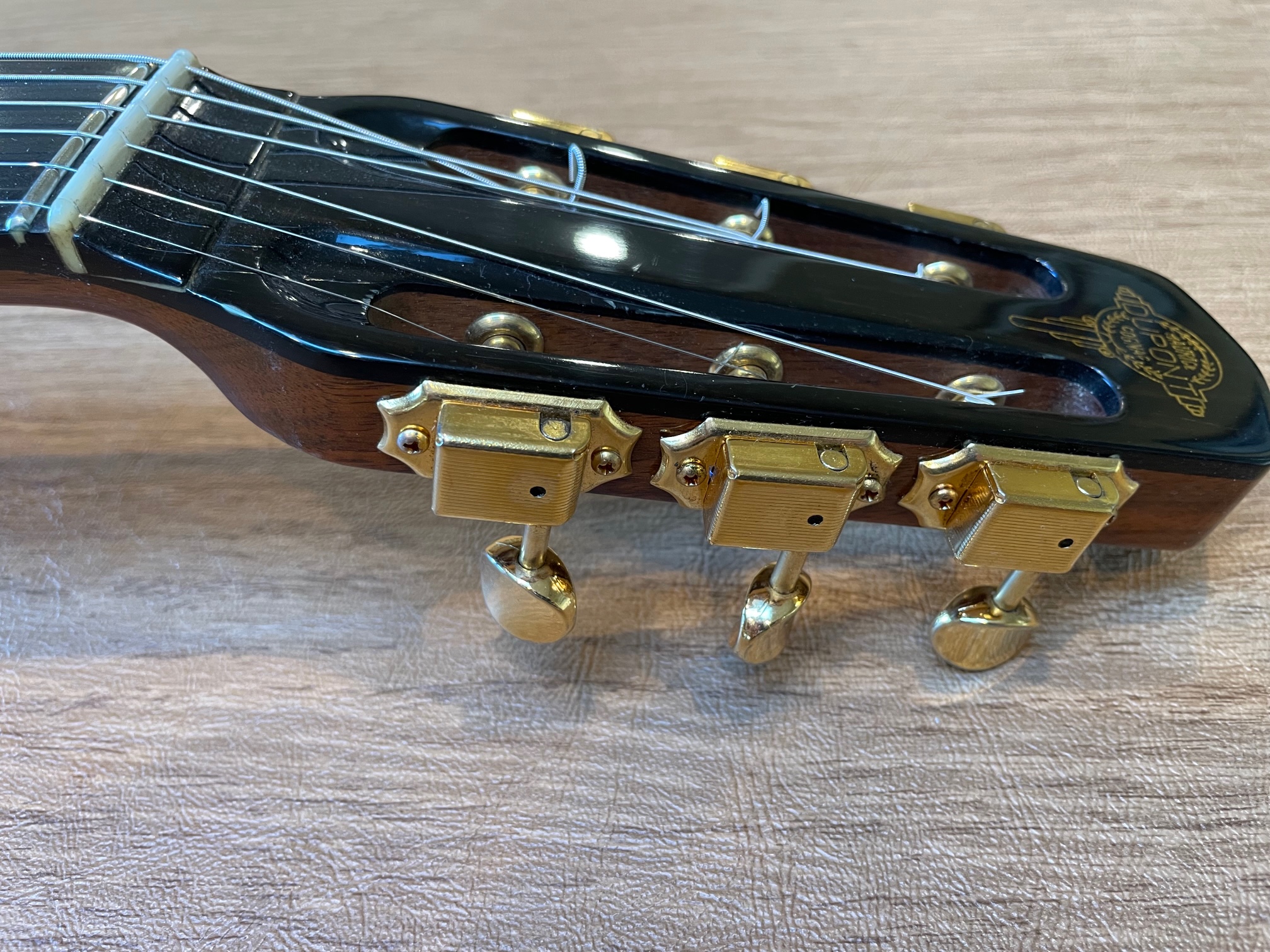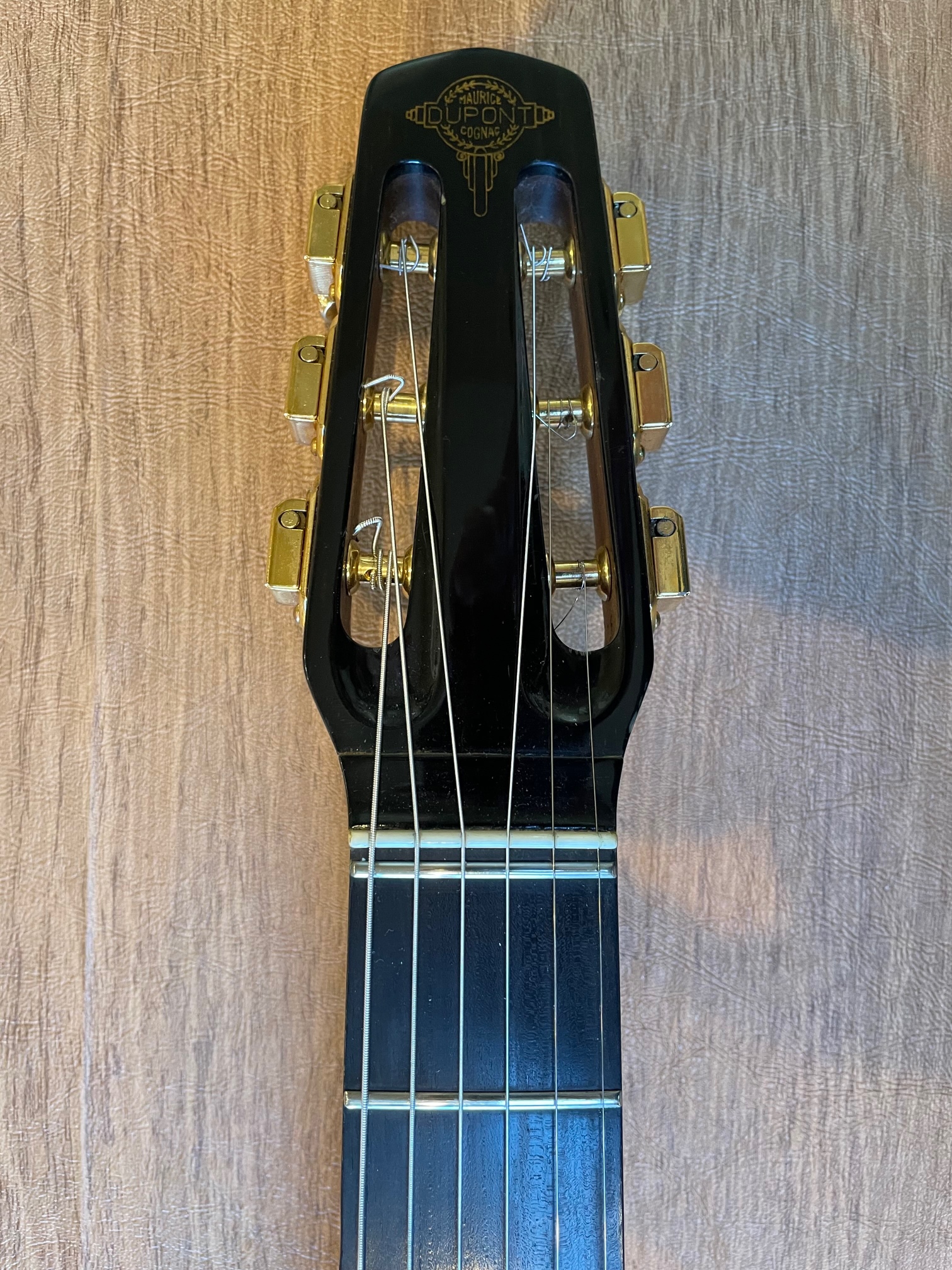 I have for your interest a 1996 Dupont Model MD35 gypsy jazz guitar, originally owned by Steve Miller (of the Steve Miller Band) who autographed the back of the headstock. This guitar is in excellent, brand-new-like condition and has no notable flaws, actually none to be seen. It has excellent action, playability, and tone.