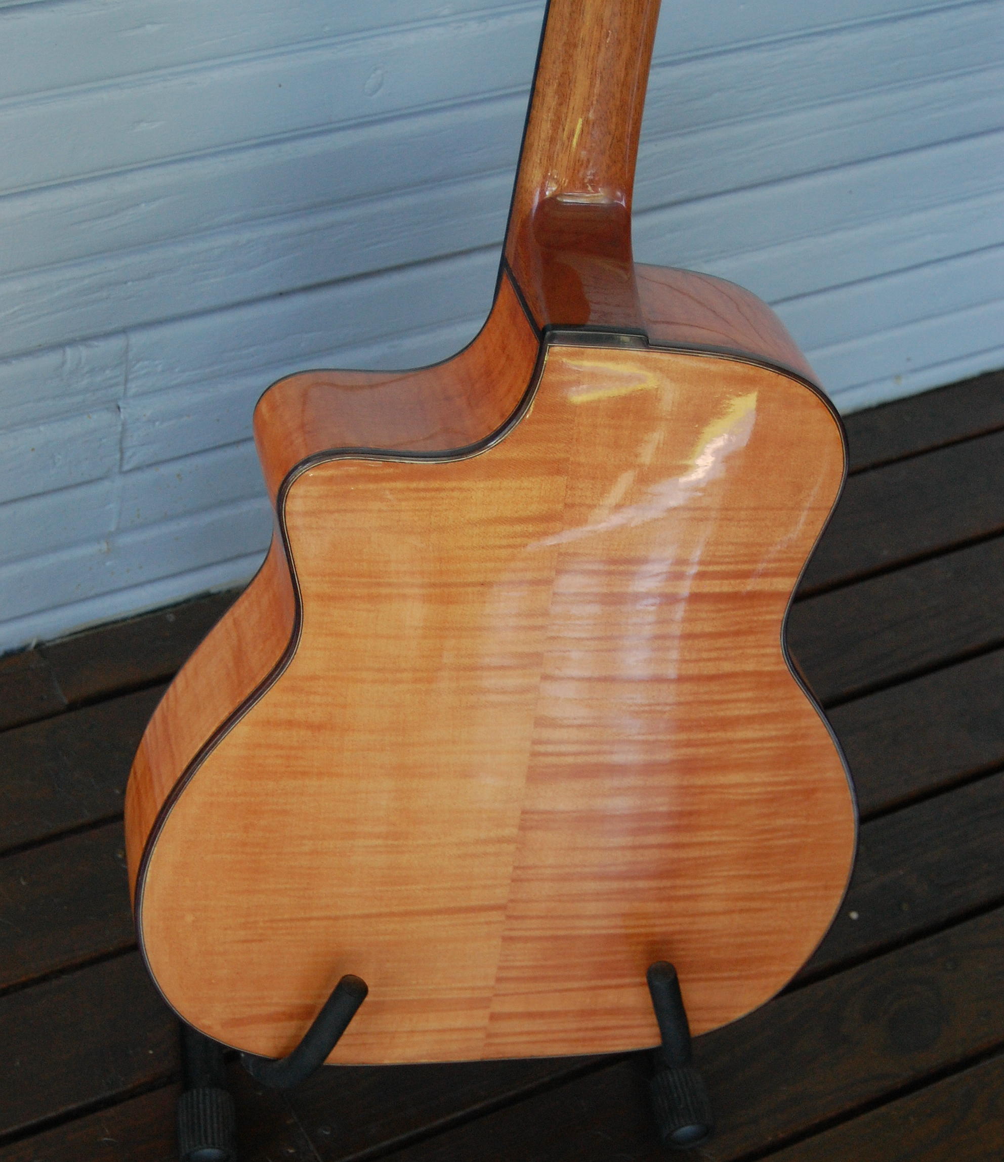 My Gaffiero Magda model arrived yesterday (shipping still says its in Paris...), and it's a gem. It's been almost a year since I received my first guitar from Cyril, and he obviously keeps learning and growing. If anyone saw his posts for Samois, this is the guitar with the really unique looking cedar top. I'm sure the guitar was hoping to go to one of the young French masters, but I hope I can do the guitar justice someday!