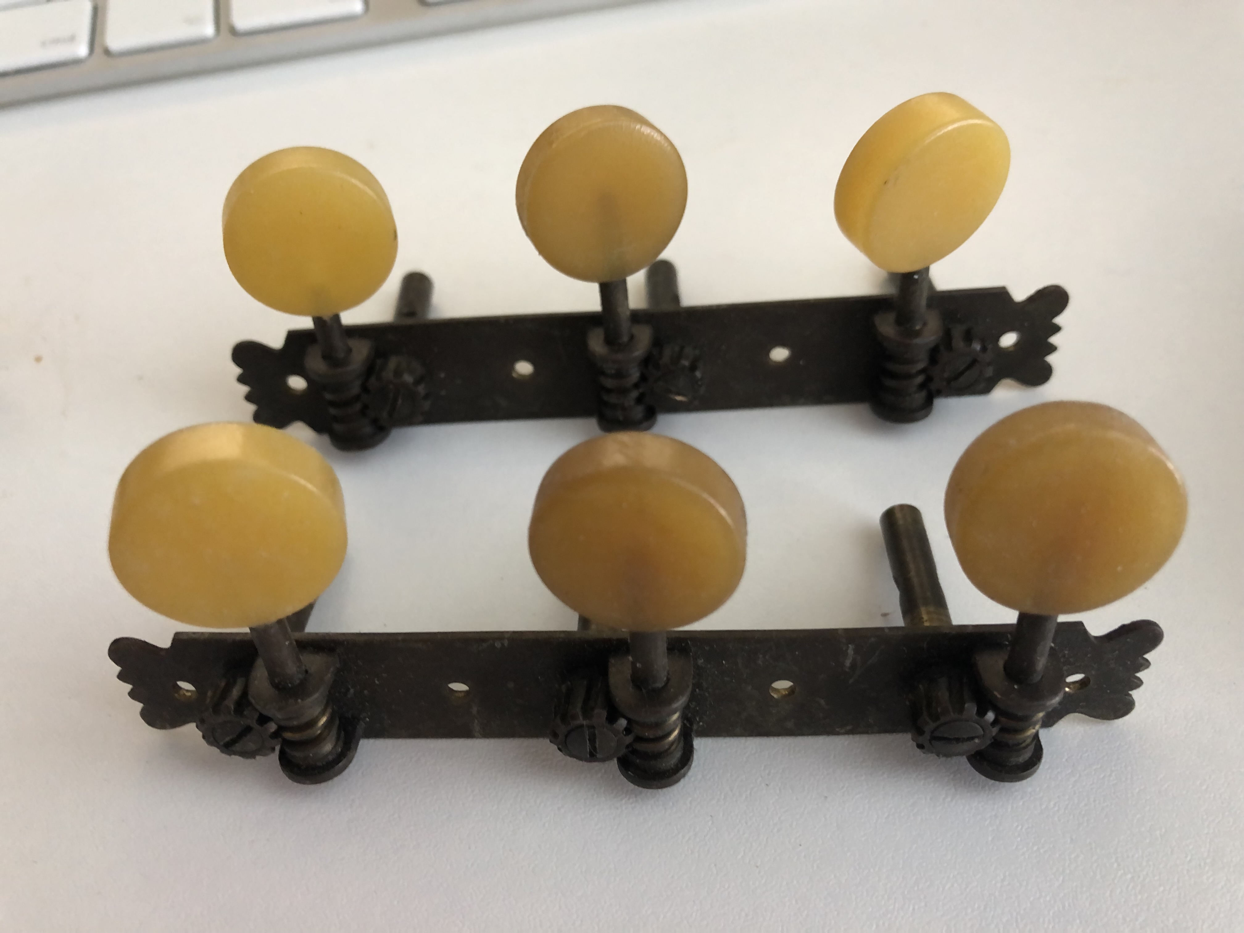 But yes, there are some who value originality as a priority and these can be made to work ok. As they are not that strong if they take a bump they can easily get slightly bent, just enough to make them tighten up which in turn will wear the gears fast. If the gears are ok, the rest can be gently worked back into shape such that they turn easily AND stay in tune but that can be a lot of fiddly work to get right and that is before you go looking for matching yellow buttons, so for most people replacing them with new tuners is a better bet. If I have enough parts to make a good working set, I do, but they are not really worth going to any trouble for, better to get some new ones.