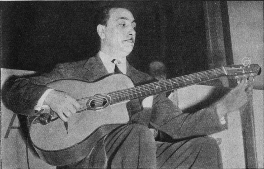 Here's Django in 1949 with a different screw-on pickup, you can see the small amp next to Django which is probably similar if not the same one he used in 1947.