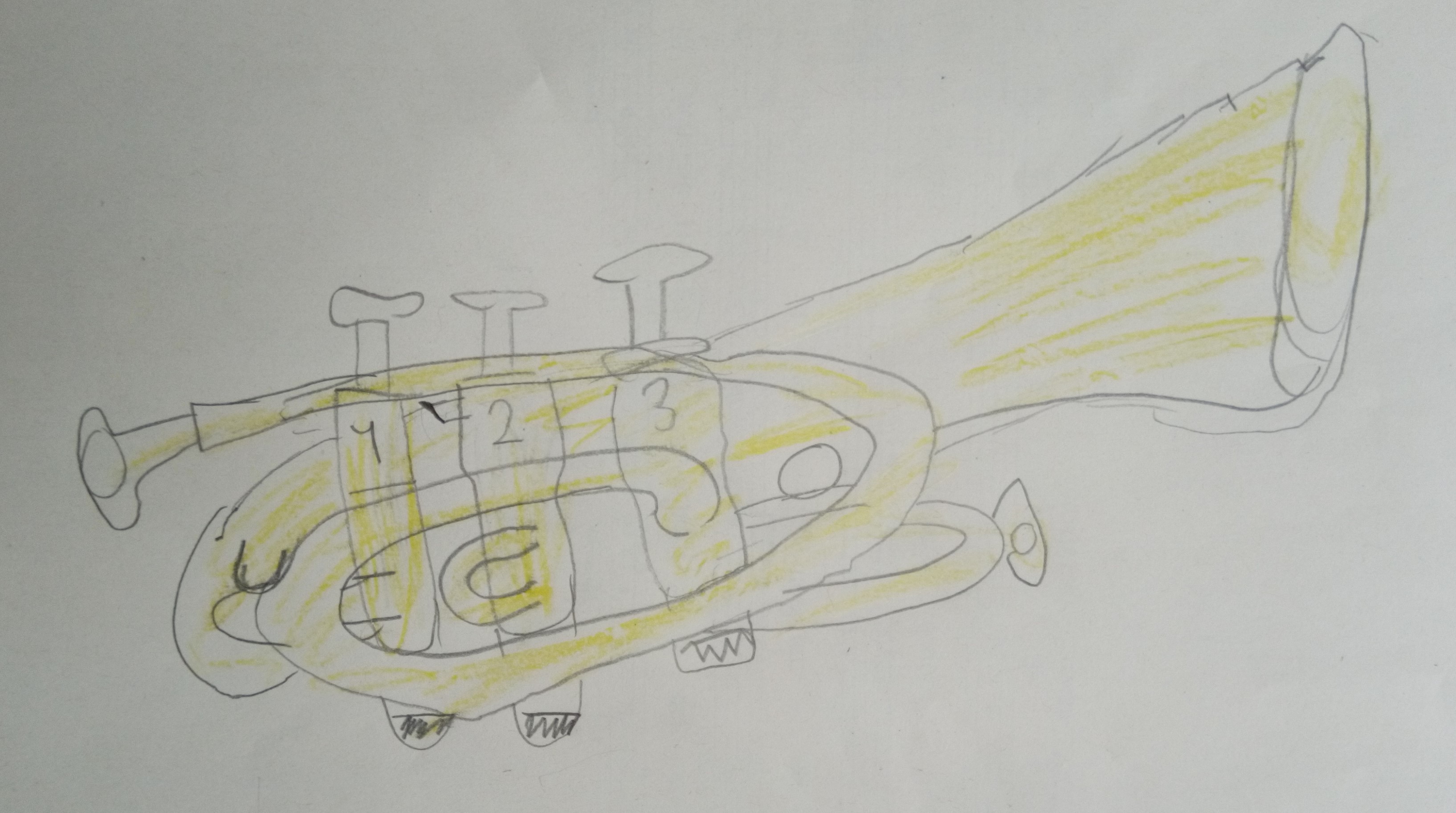 Today I had only 4 pupils in my brass class, so I decided to give 10 minute "private lessons" for everybody. To prevent those not playing with me for the moment from fooling around I gave them the task to draw their cornets, with as many details as possible.